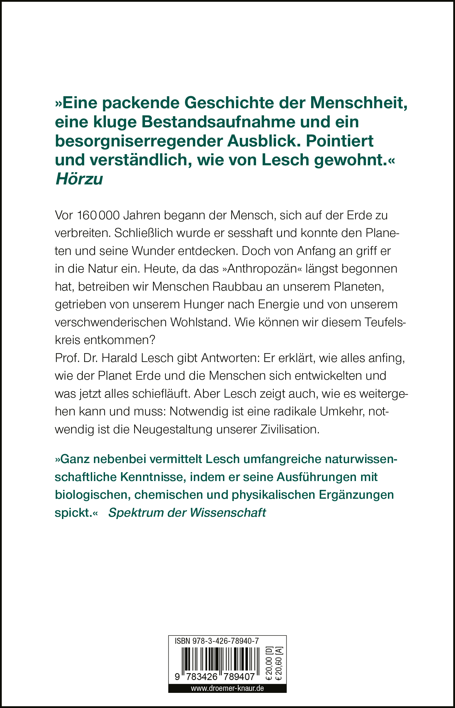 | Schlagworte | Anthropologie • Anthropozän • Artensterben • Buch Umweltschutz • Erde • Erderwärmung • Fernsehmoderator • Gesellschaftskritik • Industrialisierung • Journalist • Klima • Klimaforschung • Klimawandel • Klimawandel / Klimaveränderung • Klimawandel Sachbuch • Leschs Kosmos • Menschen-Zeitalter • Menschheit • Meteorologie und Klimatologie (Klimaforschung) • Moderator • Naturphilosophie • Naturwissenschaft • Physik • Terra X • Treibhauseffekt • Umwelt • Umweltschutz • Umweltverschmutzung • Umweltwissenschaften • Urknall • Urknall, Weltall und das Leben • veränderte Lebensbedingungen • Wasserverschmutzung • Weltall und das Leben • Wissen vor 8 • Wohlstandsgesellschaft • Zerstörung der Umwelt • Zerstörung der Welt • Zerstörung Ökosystem |