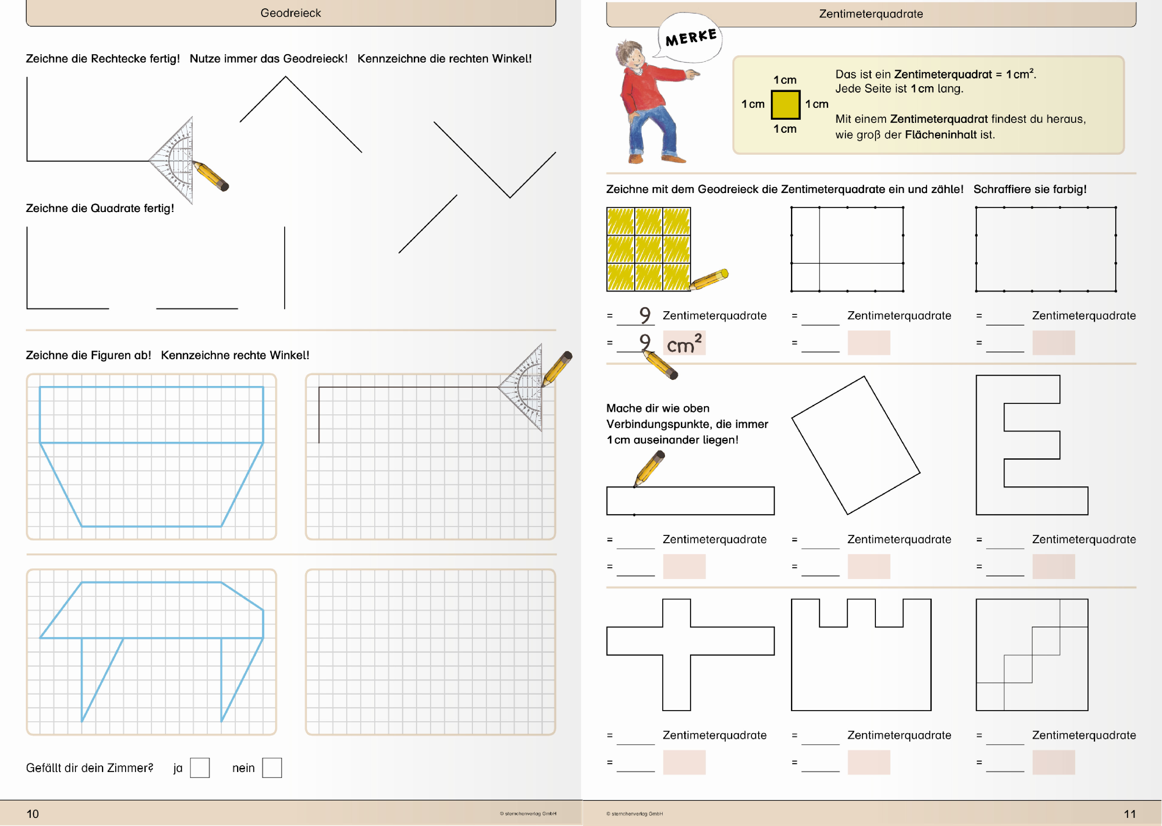Das Sternchenheft "Mein Geometrieheft", geeignet für die 3. und 4. Klasse, beinhaltet motivierende Arbeitsseiten zum Thema Form und Raum. So wie das Sternchenheft "Mein Geometrieheft 1/2", bietet auch dieses Arbeitsheft motivierende Seiten zur selbstständigen Erarbeitung verschiedener geometrischer Themen:- Flächen benennen und zeichnen- Arbeiten mit dem Geodreieck- Rechte Winkel- Zentimeterquadrate- Flächeninhalt- und Umfangberechnung- Planquadrate und Orientierung auf Kantenmodellen- Körpernetze- Zeichnen von Schrägbildern, Ansichten, Strecken, Geraden und Schnittpunkten, Kreisen (r&d) und Mustern- Geobrett- sowie vielfältige Aufgaben zur SymmetrieDie Themen entsprechen dem Lehrplan und sind bereits erprobt.