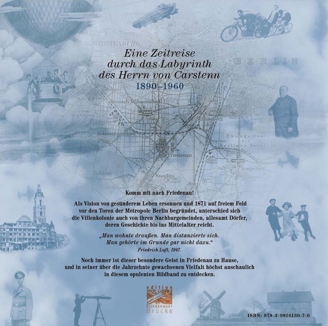 Seine bis heute erhaltene und im Berliner Stadtbild leicht ausfindig zu machende Planung, die sogenannte „Carstennfigur“, gibt in ihrem südlichen Teilstück in diesem Bildband auch den Weg für unseren Spaziergang durch Friedenau vor.