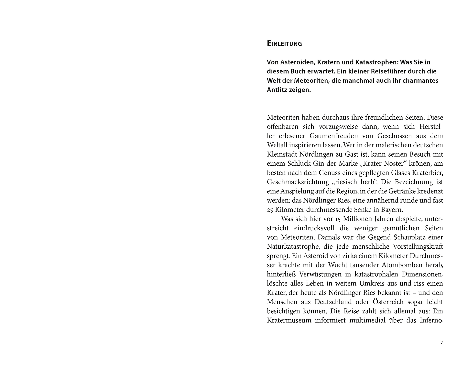 Hunderttausende Asteroiden schwirren durchs Sonnensystem - und manche kommen unserem Planeten ziemlich nahe: 17.000 Gesteinsbrocken sind bekannt, deren Bahnen an die Erde heranführen, und ständig werden neue entdeckt. Die kosmischen Besucher sind faszinierende Forschungsobjekte, die vom Beginn des Sonnensystems berichten. Fallweise aber donnert ein Meteorit zerstörerischer als eine Atombombe auf die Erde. Und es wird wieder passieren - vielleicht sogar ein Massensterben auslösen wie zur Zeit der Dinosaurier. Asteroiden haben die Erde schon oft getroffen, wovon fast 200 Meteoritenkrater auf dem Planeten zeugen. Dieses Buch beantwortet anhand neuester Forschung die wichtigsten Fragen über Meteoriten und Krater: Was sind Meteoriten, und woraus bestehen sie? Kann man Einschläge vorhersehen und abwehren? Wie entsteht ein Krater? Wo kann man eine Kirche aus Impaktgestein besichtigen? Und warum gibt es in Kratern Erdöl und Diamanten?