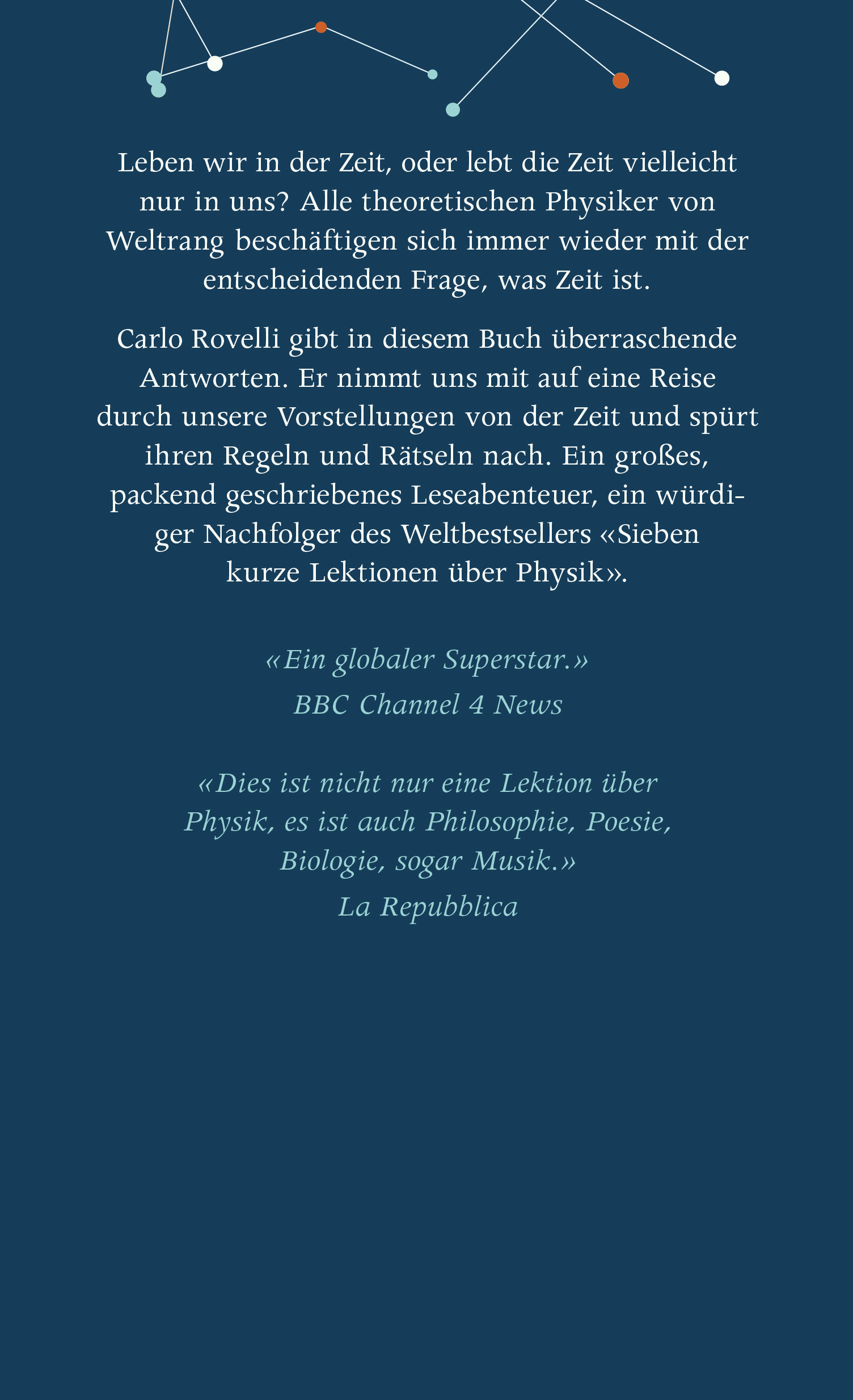 Knapp, elegant und vor allem gut lesbar … Nach der Lektüre fühlt man sich klüger. Rovelli hat etwas bei Büchern über Theoretische Physik noch nie Dagewesenes geschafft: Die meisten, die dieses Buch angefangen haben, haben es auch zu Ende gelesen.
