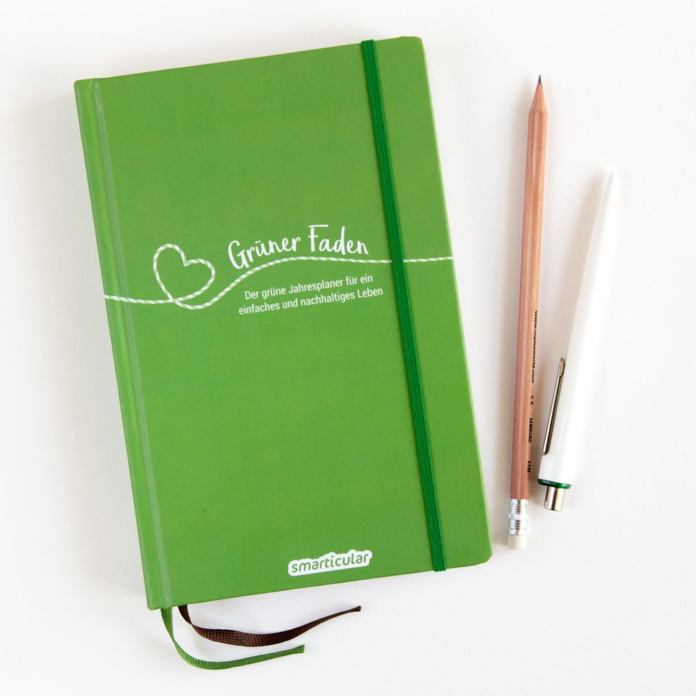 Planen, sortieren, ordnen, festhalten - Kalender und Terminplaner gibt es viele. Doch der Grüne Faden ist anders! Wir vom Ideenportal smarticular.net haben den Ratgeber und nachhaltigen Lebensplaner Grüner Faden entwickelt - ein Buch voller grüner Ideen mit jeder Menge Freiraum für dich.