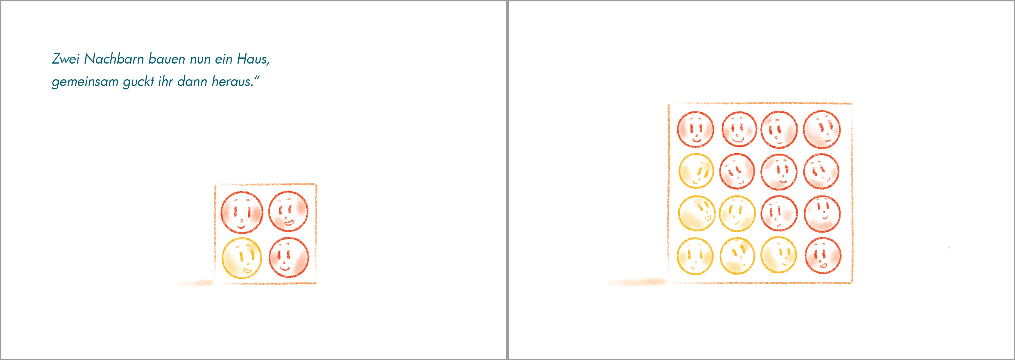 Eine Zahl als Figur? Wie das aussehen kann, entdeckt ein kleiner Kreis zusammen mit anderen Kreisen. Gemeinsam bauen sie zunächst dreieckige Zelte. Unterschiedlich viele Kreise passen in jedes Zelt. Dann erkundet der kleine Kreis, ob sie aus den Dreiecken quadratische Häuser bauen können. Leider gelingt das nicht gleich überall. Doch der kleine Kreis hat eine gute Idee, und so entstehen aus Dreieckszahlen Quadratzahlen.