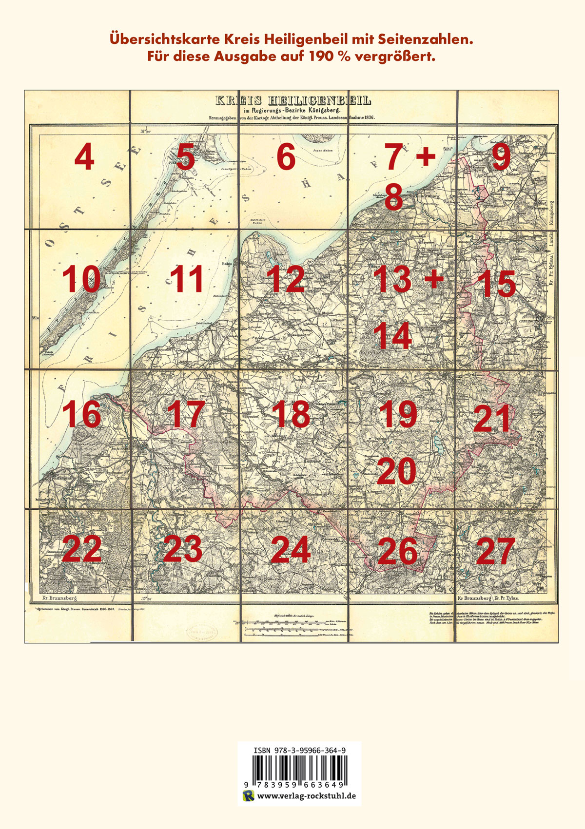 | Schlagworte | Adlig Gedau, Adlig Pinnau, Adlig Pohren, Adlig Tengen, Albehnen, Albeneck, Albenlauk, Albenort, Alt Passarge, Amalienwalde, Arnstein, Bahnau Mühle, Balga mit Gut, Barsen, Bartken • Baumgart, Bilshöfen, Birkenau, Bladiau, Bolbitten, Bomben, Bönkenwalde, Brandenburg, Bregden, Breitlinde, Bükühnen, Büsterwalde, Charlottenthal, Deutsch Thierau, Dösen, Dösenbruch • Dothen, Dümpelkrug, Düsterwalde, Eichholz, Einsiedel, Eisenberg, Fedderau, Födersdorf, Follendorf, Freihof, Freudenthal, Friedrichshof, Frisches Haff, Gabditten, Gallingen, Gedilgen • Gerlachsdorf, Gottesgnade, Groß Hasselberg, Groß Hasselberg, Groß Hoppenbruch, Groß Klingbeck, Groß Lüdtkenfürst, Groß Rödersdorf, Grunau, Grunenfeld, Grünwalde, Grünwehr • Grünwiese, Hammersdorf, Hanswalde, Haselau, Hasselpusch, Heidenhof, Heiligenbeil, Henneberg, Hermsdorf, Herzogswalde, Heyde zu Pohren, Hohenfürst, Hohenwalde, Honigbaum • Jäcknitz, Jarft, Jürkendorf, Kahlholz, Kahlwalde, Kämmershöfen, Kamnicken, Karben, Keimkallen, Kildehnen, Kirschdorf, Klaussitten, Klein Hasselberg, Klein Hoppenbruch, Klein Klingbeck • Klein Lüdtkenfürst, Klein Rödersdorf, Klein Windkeim, Kleinwalde, Königlich Gedau , Königlich Pinnau, Königlich Pohren, Königlich Rödersdorf, Königlich Tengen, Königsdorf, Konradswalde • Kopainen, Korschellen, Kukehnen, Kumgarben, Kupgallen, Kuyschen, Langendorf, Lank, Lauck, Lauenfeld, Laukitten, Lauterbach, Legnitten, Lemkühnen, Leysuhnen, Lichtenfeld • Lindenau, Lindenberg, Lokehnen, Lönhöfen, Louisenhof, Ludwigsort, Maggen, Mahlendorf, Maraunen, Maternhöfen, Montitten, Morren, Mühlenfeld, Mükühnen, Müngen, Nausseden • Nemritten, Neu Bahnau, Neu Damerau, Newecken, Ober Ecker, Otten, Pannwitz, Paplauken, Partheinen, Patersort, Patranken, Pellen, Perbanden, Perscheln, Perwilten, Plössen • Pokarben, Poplitten, Pörschken, Pottlitten, Praußen, Preuschhof, Preußisch Eylaul, Preußisch Thierau, Preußisch Wäldchen, Quilitten, Radau, Rauschbach, Rauschnick, Rehfeld, Rensegut • Rippen, Ritterthal, Robitten, Romansgut, Rosenberg, Rosenhof, Rosocken, Rossen, Ruhnenberg, Sargen, Schettnienen, Schirten, Schlepstein, Schoischen, Schölen zu Pohren • Rippen, Schönborn, Schönfeld, Schönlinde, Schönrade, Schönwalde, Schreinen, Schwanis, Schwengels, Sollecken, Sonnenstuhl, Sperwienen, Steindorf, Stobecken, Stolzenberg, Strauben, Streitswalde, Stuthenen • Thomsdorf, Tiefensee, Unter Ecker, Vogelsang, Vorderwalde, Waltersdorf, Wangnicken, Wargitten, Warnikam, Wedderau, Weißels, Wendelau, Wermten, Wesselshöfen, Weßlienen, Wilknitt, Windtkeim, Wohlau, Wolitta, Wolittnick, Zinten |
