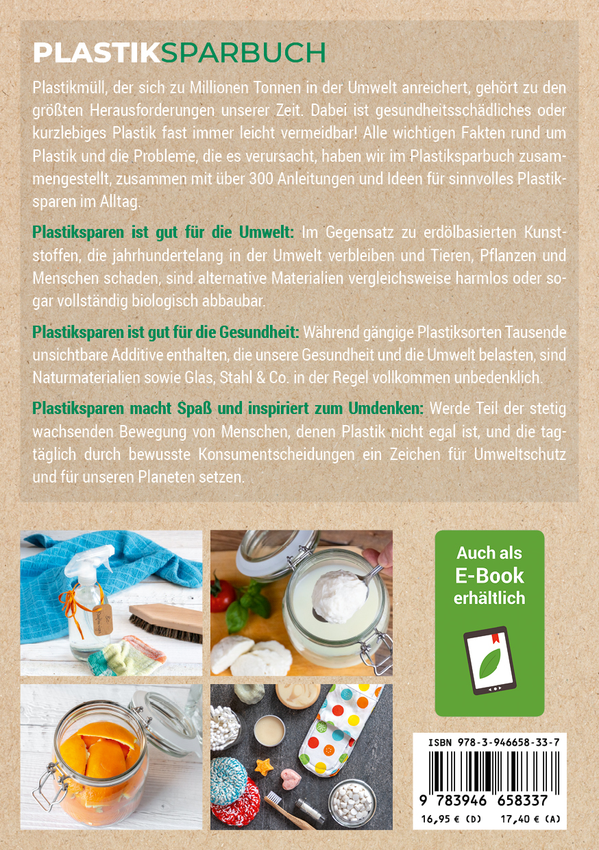 176 Kilogramm Plastik verbraucht jeder von uns pro Jahr. Vor allem Wegwerfartikel und kurzlebige Verpackungen sind problematisch – und fast immer vermeidbar! Die besten Alternativen zu kurzlebigen Plastikprodukten stellen wir in diesem Buch vor, zeigen Strategien zur Plastikvermeidung und Wege zum nachhaltigen Umgang mit Plastik.