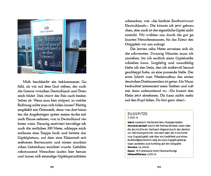 - Wichtige Fragen zum Thema Bergwandern wie »Schmeckt der Tomatensaft auf der Zugspitze oder dem Hasselbrack besser?« werden geklärt
