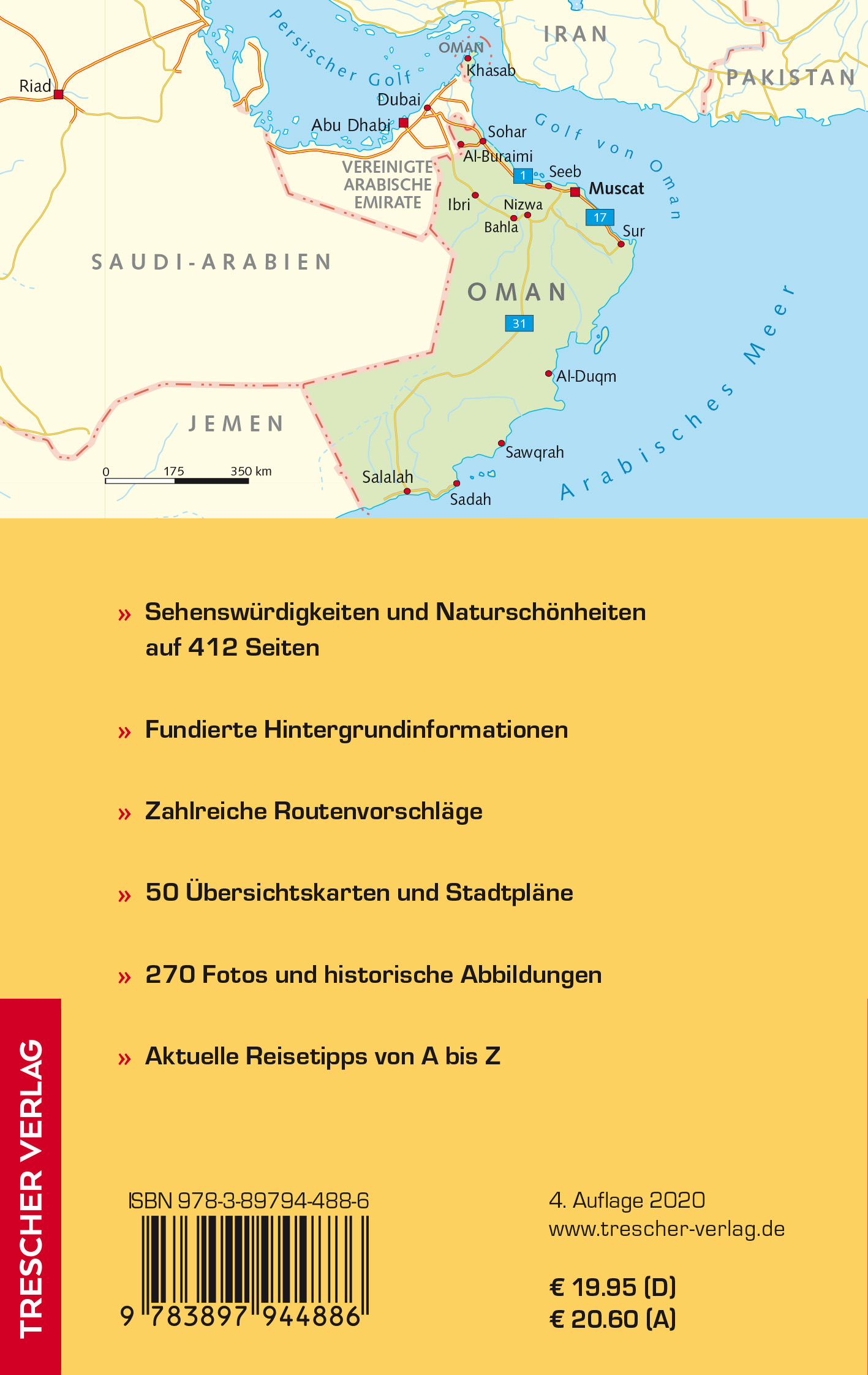| Schlagworte | Arabisch • Arabische Halbinsel • Dhofar • Golf von Oman • Hadschar-Gebirge • Länderkunde • Maskat • Matrah • Musandam • Muscat • Muskat • Nizwa • Oase • Oman • Omangebirge • Oman Reisen • Oman Urlaub • Qurum Beach • Reiseführer • Reiseführer Oman 2020 • Reisetipps Oman • Reisevorbereitung Oman • Reisezeit Oman • Rub al-Chali • Rub al-Khali • rundreise oman • Salala • Salalah • Sandwüste • Sehenswürdigkeiten Oman • Souk • Straße von Hormuz • Studienreise • Studienreise Oman • Sultanat • Suq • Sur • Trescher Verlag Oman • Trescher Verlag Reiseführer • Unterkunft Oman • Visum Oman • Wadi • Weihrauch • Wüste |