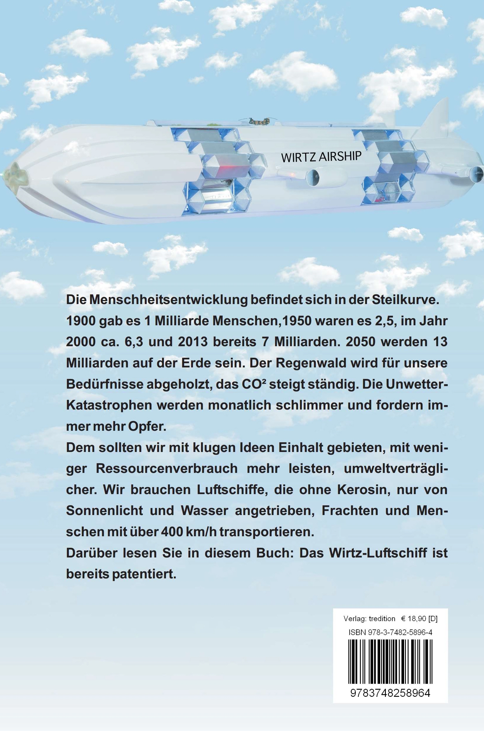 Fritz Wirtz, Kaufmann und Textilingenieur, 79 Jahre alt, habe zwei Söhne, Markus ist Rechtsanwalt, Kartellrecht in Düsseldorf und Christian ist Dipl.Ökonom bei einem Telekomunikations Unternehmen in Johannisburg, beide haben promoviert und sind verheiratet. Drei zauberhafte Enkelkinder, Charlotte, Julius, Antoine und Schwiegertöchter. Ich bin Leichtbauentwickler, Luftschifferfinder des erteilten Luftschiffpatentes und wohne in Duisburg-Baerl mit meiner zweiten Frau, da meine erste leider an Leukämie, nach 52 Ehejahren verstarb, auf der Augustastr. 6. Hier arbeite ich für meine Parkett - Unternehmung und entwickle meine Leichtbaupläne. Meine Pläne sind ausgerichtet auf den Aufbau einer Bauplattenproduktion, patentiert, ein Produkt mit großer Nachhaltigkeit und es soll den Bau von neuen Häusern, die ohne Heizung und Strom, somit fast autonom sind, in den Markt bringen. Im zweiten Schritt soll sie die Entwicklung von System-Luftschiffen finanzieren helfen, die ohne CO² Belastung von jedem Punkt zu jedem Punkt der Erde alle Lasten und Passagiere transportieren bei bis zu 400 kmh. Somit nur mit Sonnenenergie und Wasser betrieben werden. Wie das funktioniert erzählt mein Buch: Das Wirtz Luftschiff, und erklärt die Technik und die Bionik mit Zeichnungen und Bildern. Hinzu eine kleine Geschichte der Luftschiff-Historie, doch wichtigste Aussage: die große Zeit der Luftschiffe und eine Neue Zeit des Super-Leichtbaus beginnt mit https//wirtz-future.eu. Fritz Wirtz