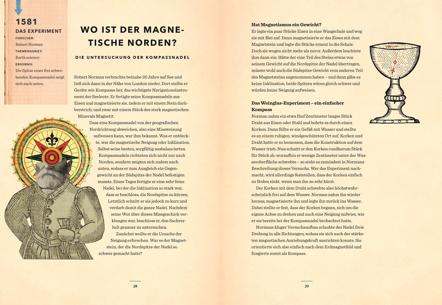 Von den ersten Versuchen in der Antike über Galileis Sternenbeobachtungen und Newtons optische Messungen bis zur Atomspaltung und Quantenteleportation erklärt das Buch Lesern ohne Vorkenntnisse die 50 größten wissenschaftlichen Experimente und ihre Erkenntnisse. Die einzelnen Versuchsverfahren werden nachvollziehbar beschrieben und die Ergebnisse und Auswirkungen jeweils sorgfältig zusammengefasst. Dies ermöglicht dem Leser, ein gutes Gespür für die Prozesse und Methoden wissenschaftlicher Untersuchungen zu bekommen.