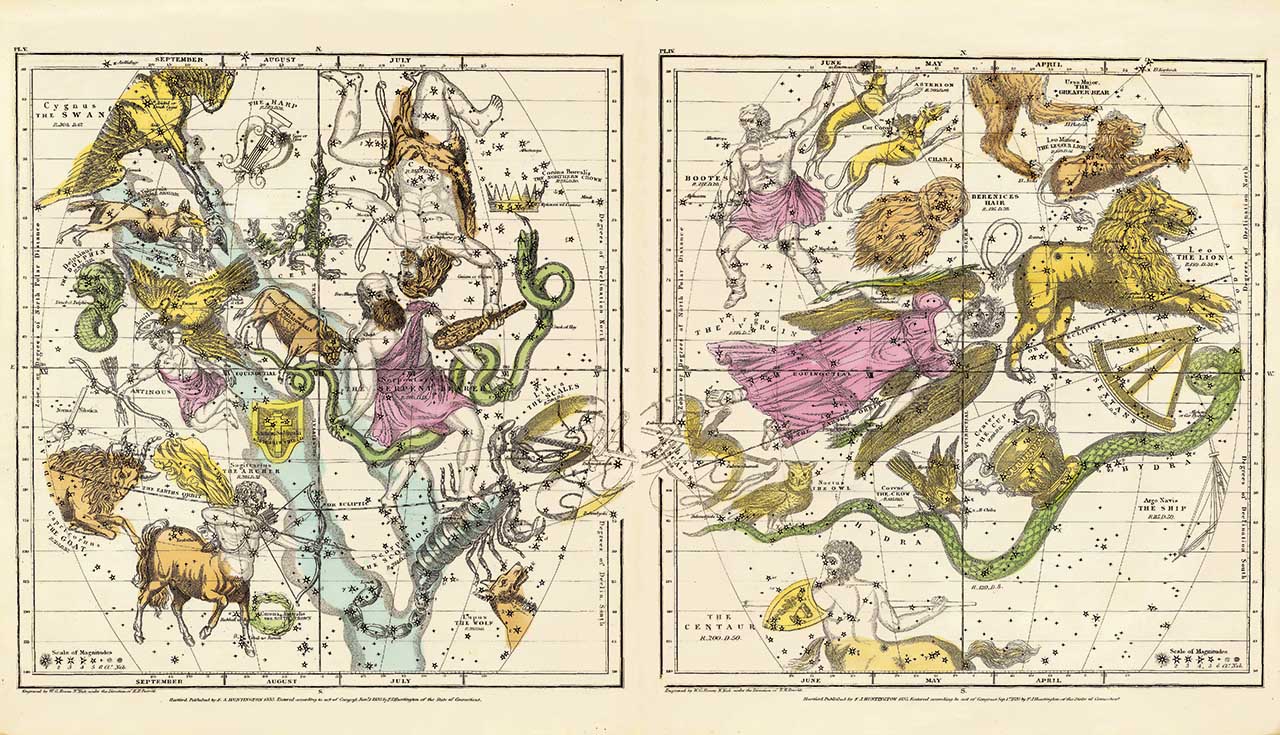 Die Astronomie gilt als die erste exakte Naturwissenschaft in der Geschichte. Das grandiose Astronomicum Caesareum, der spektakuläre Sternenatlas Harmonia Macrocosmica, der Atlas des vergessenen Astronomen Burritt: Sie zählen zu den großen astronomischen Druckwerken. Entdecken Sie handkolorierte Tafeln, Karten zu Sternen, Mond und Planetensystem mit Gestalten aus Mythologie und Bibel.