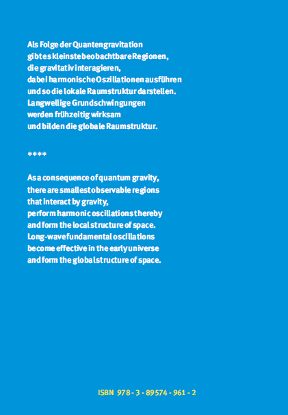 Querverbindungen zu anderen Wissensgebieten ermöglichen einen wirksamen Zugang. Antworten auf 42 häufig gestellte Fragen klären die Relation zu Basiskonzepten. Übungen mit Lösungen ermöglichen vertieftes Verständnis und fördern die Eigenständigkeit. General relativity theory describes the macrocosm, quantum physics the microcosm. Both fields coact in a natural manner in the universe: Limitations of observation by Heisenberg‘s uncertainty relation and by the Schwarzschild radius cause smallest observable regions. These interact by gravity, perform harmonic oscillations thereby and form the local structure of space. This explains cosmic inflation and solves the flatness problem, the horizon problem, the reheating problem as well as the problem of the big bang singularity. The formation of dark matter is explained additionally.
