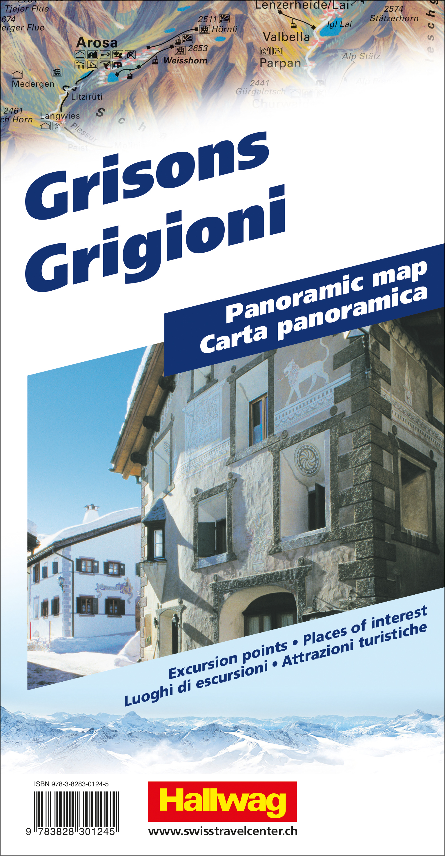 Die Hallwag Panoramakarte gibt das Graubünden mit seinem typischen Charakter und seiner ganzen Schönheit wieder.