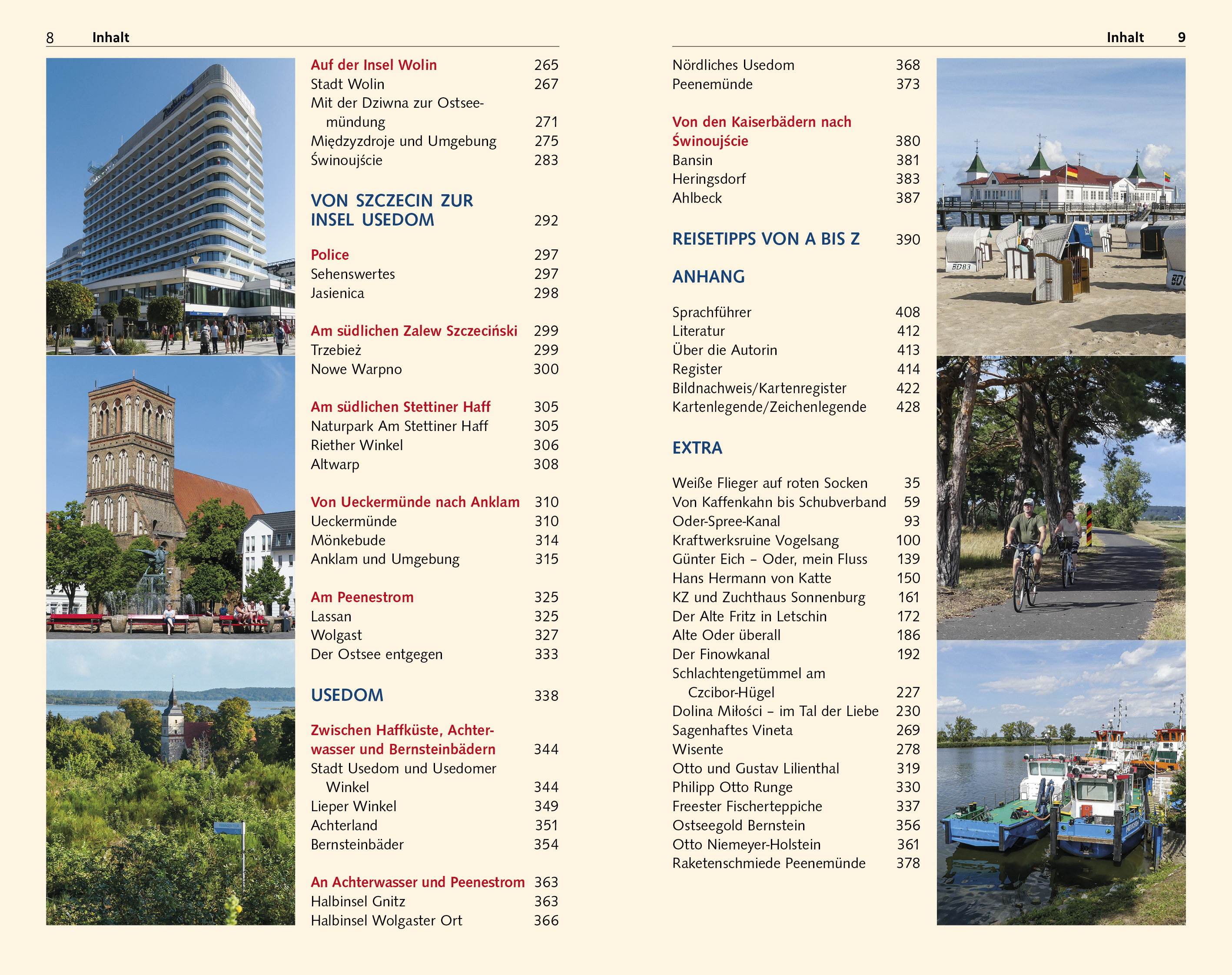 INHALTSVERZEICHNISVorwort 11Herausragende Sehenswürdigkeiten 12Das Wichtigste in Kürze 14Unterwegs mit Kindern 16DER FLUSS, DAS LAND, DIE LEUTE 20Die Oder im Überblick 22Landschaft und Natur 23Von der Quelle bis zur Mündung 23Klima und Wetter 29Tier- und Pflanzenwelt 30Die Oder im Strom der Zeit 36Slawische Besiedlung 36Reiche entstehen - Regnum Teutonicorum 36Reiche entstehen - Polonia 37Boleslaw I. Chrobry 38An der Ostseeküste 38Wendenkreuzzug und weitere Waffengänge 39Die Geburt der Mark Brandenburg 40Landgewinne, Landverluste 40Lebuser Land 41Terra trans Oderam 42Neumark 42Das Haus Hohenzollern übernimmt 42Pommern unter den Greifenherzögen 43Brandenburg im 16. Jahrhundert 44Jagiellonisches Großreich und Niedergang 45Der Große Kurfürst 45Königreich Preußen 46Friedrich der Große 47Die Teilungen Polens 49Im 19. und frühen 20. Jahrhundert 50Polen entsteht neu 51Zwischen den Kriegen 52Polens Westverschiebung 52Flucht und Vertreibung 53BRD, DDR, Volksrepublik 54Der Eiserne Vorhang fällt 55Wiedervereinigungen 55Die Oder heute 57Wasserbau und Schifffahrt 58Oderschifffahrt im Wandel 58Umbau und Ausbau 61Die Schifffahrt kommt voran 62Staustufen und Kraftwerke 62Wege zur Ostsee 63Von Berlin nach Stettin 64Die HFW wird ausgebaut 65Bau- und Schutzmaßnahmen 65Wirtschaft und Umweltschutz 66Umstrittener Ausbau 66Aufschub erreicht 67Odra, Oder, Odra 69Die Oder in Kunst und Kultur 69Essen und Trinken 74Fisch 74Märkische Küche 74Pommersche Küche 75Polnische Küche 76ZWISCHEN NEIßEMÜNDUNG UND FRANKFURT/SLUBICE 78Ratzdorf und die Neißemündung 82Geschichte 82Sehenswertes 83Neuzelle 84Geschichte 84Kloster 86Sehenswertes im Ort Neuzelle 90Eisenhüttenstadt 94Geschichte 94Sehenswertes 95Ziltendorfer Niederung 101Ziltendorf 101Aurith 101Brieskow-Finkenheerd 104Geschichte 104Sehenswertes 105Steile Wand Lossow 105Burgwall Lossow 105Helene- und Katjasee 106Frankfurt (Oder) 108Geschichte 108Stadtrundgang 111Slubice 119Geschichte 119Sehenswertes 120Zwischen Slubice und Neißemündung 124Swiecko bis Cybinka 125Cybinka und Umgebung 126Krzesinki-Landschaftspark 128VON LEBUS NACH KÜSTRIN - KIETZ/KOSTRZYN 130Lebus und Umgebung 134Sehenswertes 134Reitwein 136Im südlichen Oderbruch 141Seelow 141Friedersdorf 142Golzow 142Fort Gorgast 143Küstrin-Kietz 143Kostrzyn nad Odra 145Geschichte 145Altstadt/Stare Miasto 148Ausflüge nach Süden 151Ausflug nach Norden 153Nationalpark Warthemündung 156Dabroszyn 157Wanderungen ab Chyrzyno 158Slonsk 159Wanderungen ab Slonsk 159ZWISCHEN _KOSTRZYN UND _HOHENWUTZEN 162Oderbruch 166Geschichte 166Mittleres Oderbruch 168Niederoderbruch 174Bad Freienwalde 180Am Oder-Havel-Kanal 188Mit der Stromoder von Kostrzyn nach Osinów Dolny 194Landschaftspark Warthemündung 195Cedynski-Landschaftspark 195IM _UNTEREN_ ODERTAL 202Nationalpark Unteres Odertal 207Hohensaaten-Friedrichsthaler Wasserstraße 208Von Hohensaaten nach Zützen 209Schwedt/Oder 215Gartz und Umgebung 221Vom Cedynski-Landschaftspark bis vor die Tore Szczecins 225Cedynia 225Bielinek und Piasek 228Von Zaton Dolna nach Krajnik Dolny 229Von Krajnik Dolny nach Gryfino 231VON _SZCZECIN _ZUR _INSEL _WOLIN 236Szczecin 241Geschichte 243Historisches Zentrum 246Gründerzeit und Moderne 253Von Szczecin an die Haffküste 260Dabie-See 260Stepnica 261Kopice 262Naturpark Stettiner Haff 262