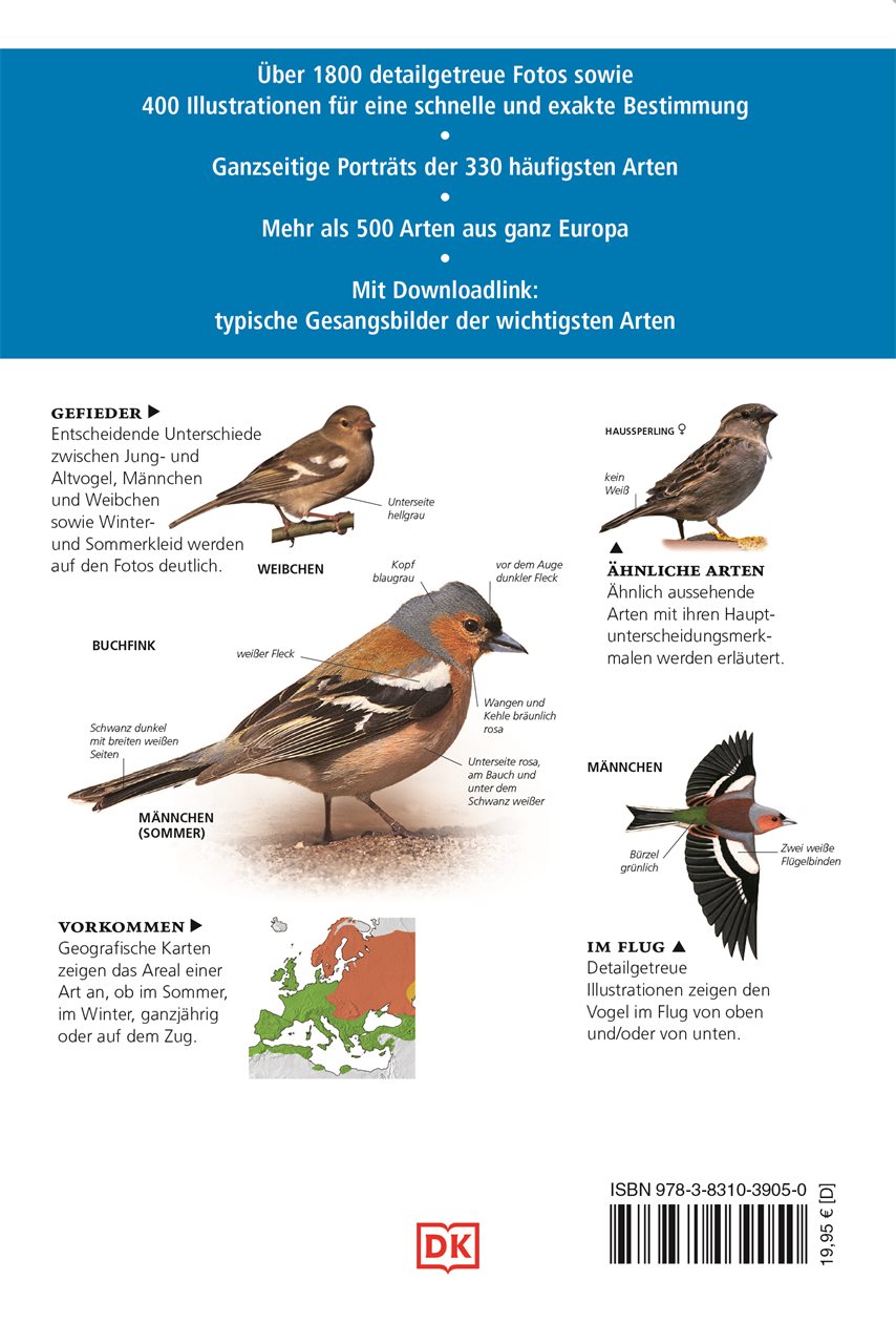 - Die häufigsten Vogelarten Europas: Über 330 Arten werden in ganzseitigen Porträts vorgestellt, viele weitere in übersichtlichen Kurzporträts. Im Bestimmungsbuch erfahren Sie alles zu Anatomie, Besonderheiten, Sozialverhalten, Gesang, Nistplätzen, Futter, Vogelzug, Verbreitungsgebieten und Lebenserwartung der Tiere.