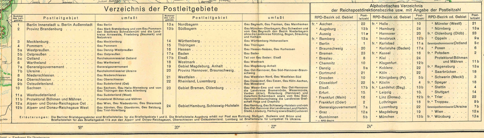 Postleit-Gebietskarte. Deutsches Reich nebst besetzten Gebieten (Ostland, Ostpreußen, Generalgouvernement, Ukraine, Luxemburg, Westmark und Elsaß. Bearbeitet im Reichspostzentralamt.