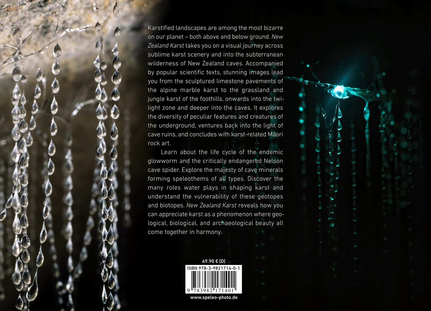 Learn about the life cycle of the endemic glowworm and the critically endangered Nelson cave spider. Explore the majesty of cave minerals forming speleothems of all types. Discover the many roles water plays in shaping karst and understand the vulnerability of these geotopes and biotopes. New Zealand Karst reveals how you can appreciate karst as a phenomenon where geological, biological, and archaeological beauty all come together in harmony.“