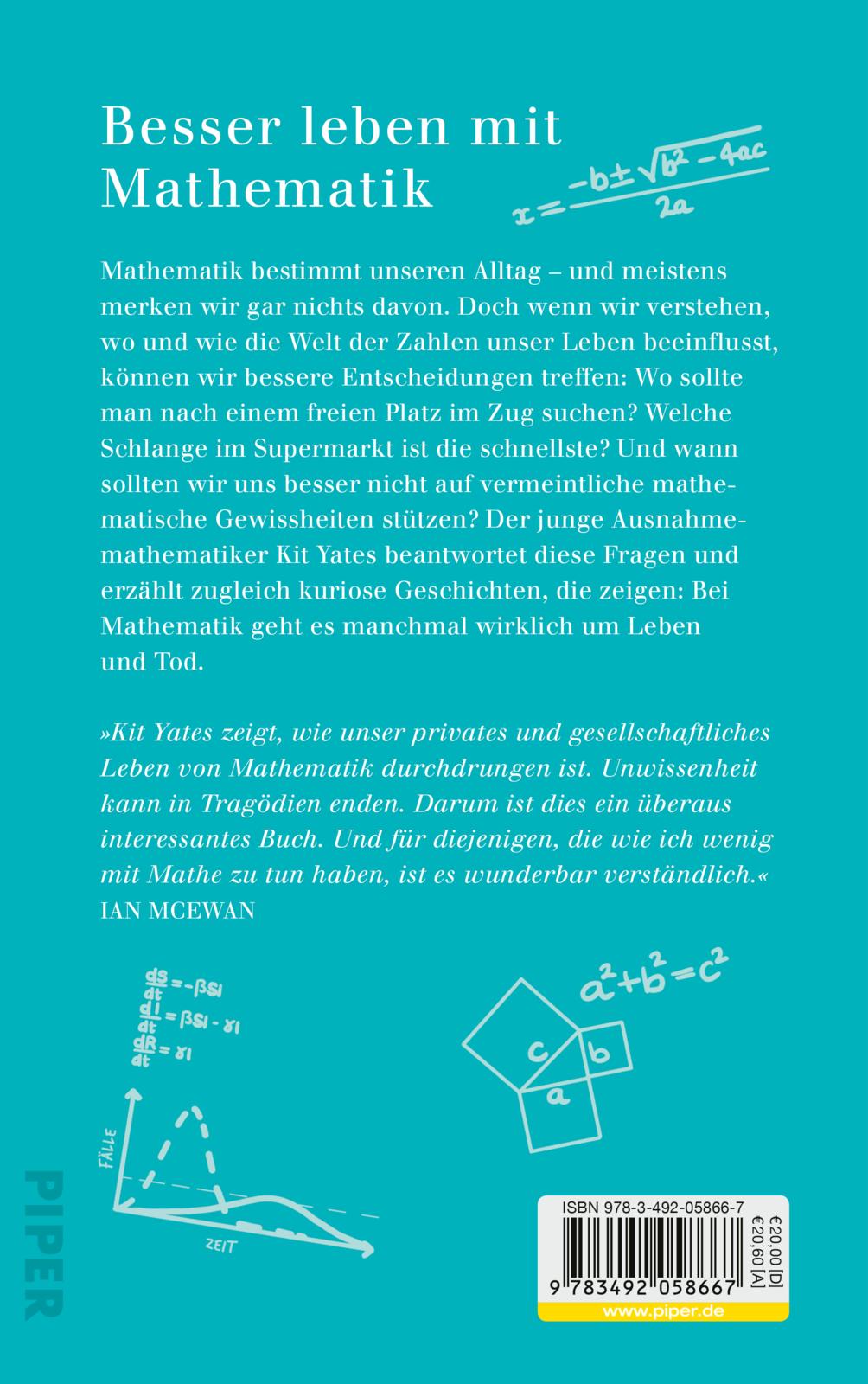 Kit Yates beantwortet diese Fragen und erzählt zugleich kuriose Geschichten über mathematische Missverständnisse, die zeigen: Bei Mathe geht es manchmal wirklich um Leben und Tod.