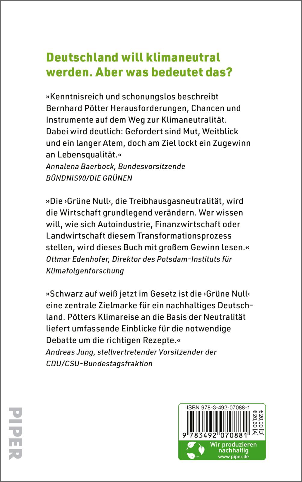 »Schwarz auf weiß jetzt im Gesetz ist die 'Grüne Null' eine zentrale Zielmarke für ein nachhaltiges Deutschland. Pötters Klimareise an die Basis der Neutralität liefert umfassende Einblicke für die notwendige Debatte um die richtigen Rezepte.«