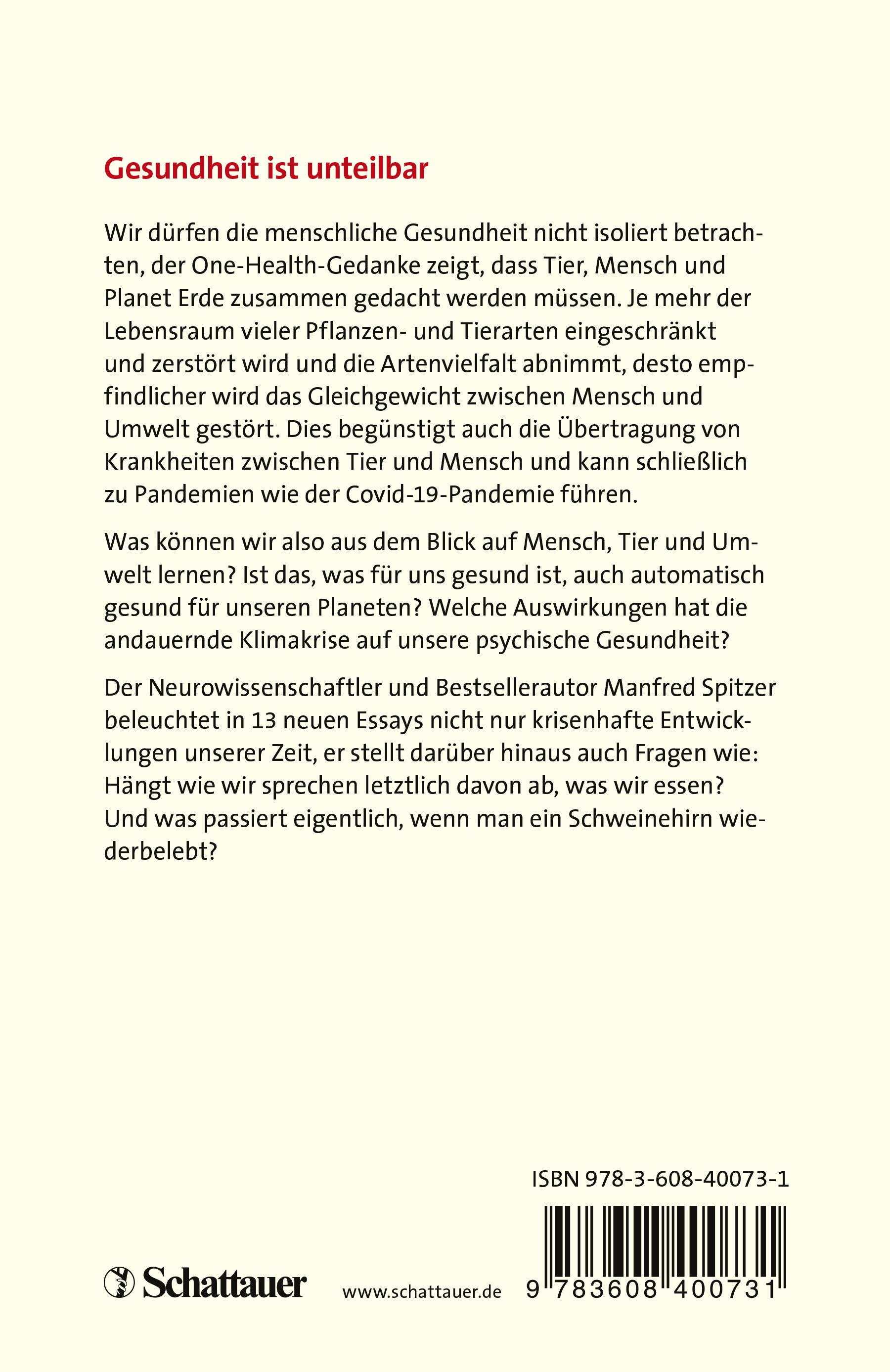 Was können wir also aus dem Blick auf Mensch, Tier und Umwelt lernen? Ist das, was für uns gesund ist, auch automatisch gesund für unseren Planeten? Hat die andauernde Klimakrise Auswirkungen auf unsere psychische Gesundheit?