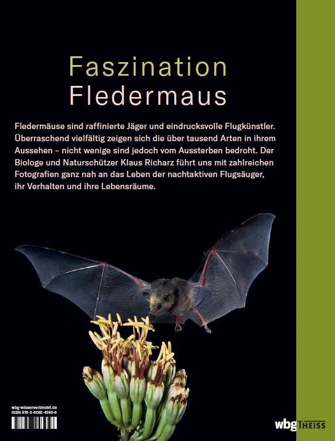 Um Fledermäuse ranken sich zahlreiche Mythen und Legenden. Über Jahrhunderte trugen sie zu ihrem schlechten Ruf bei. Nicht nur ihre Orientierung im Dunklen und die Tatsache, dass sie in Ruhestellung zumeist kopfüber hängen, machen sie zu faszinierenden, aber auch etwas unheimlichen Lebewesen. Erst mit dem zunehmenden Umweltbewusstsein seit den 70er-Jahren haben die ungewöhnlichen Tiere einen Imagewandel durchgemacht. Der Biologe und Naturschützer Klaus Richarz beschäftigt sich seit über 40 Jahren mit dem Fledermausschutz. In seinem Buch porträtiert er kenntnisreich internationale und heimische Fledermäuse und zeichnet ein umfassendes Bild dieser gefährdeten Spezies.