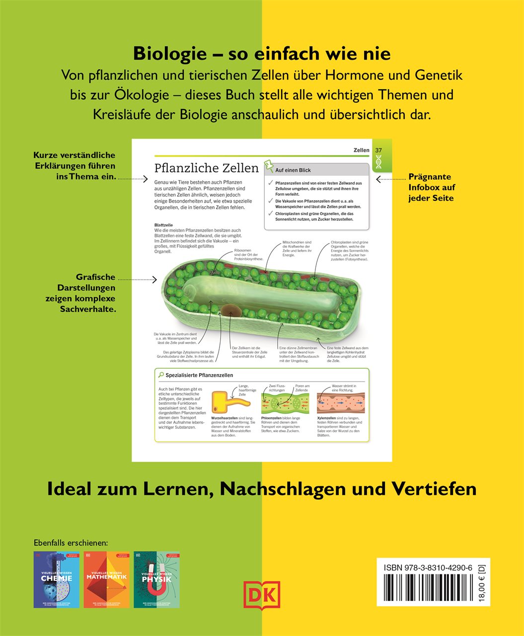 Naturwissenschaften für Schüler*innen so simpel und lebendig wie nie! Die neue DK-Reihe "Visuelles Lexikon" unterstützt Schüler*innen mit ansprechenden Illustrationen und kompakten Erklärungen beim einfachen und schnellen Verständnis wissenschaftlicher Sachverhalte. Dieses Biologie-Buch ist der perfekte Begleiter für den Schulunterricht, die Hausaufgaben oder für die Prüfungsvorbereitung.