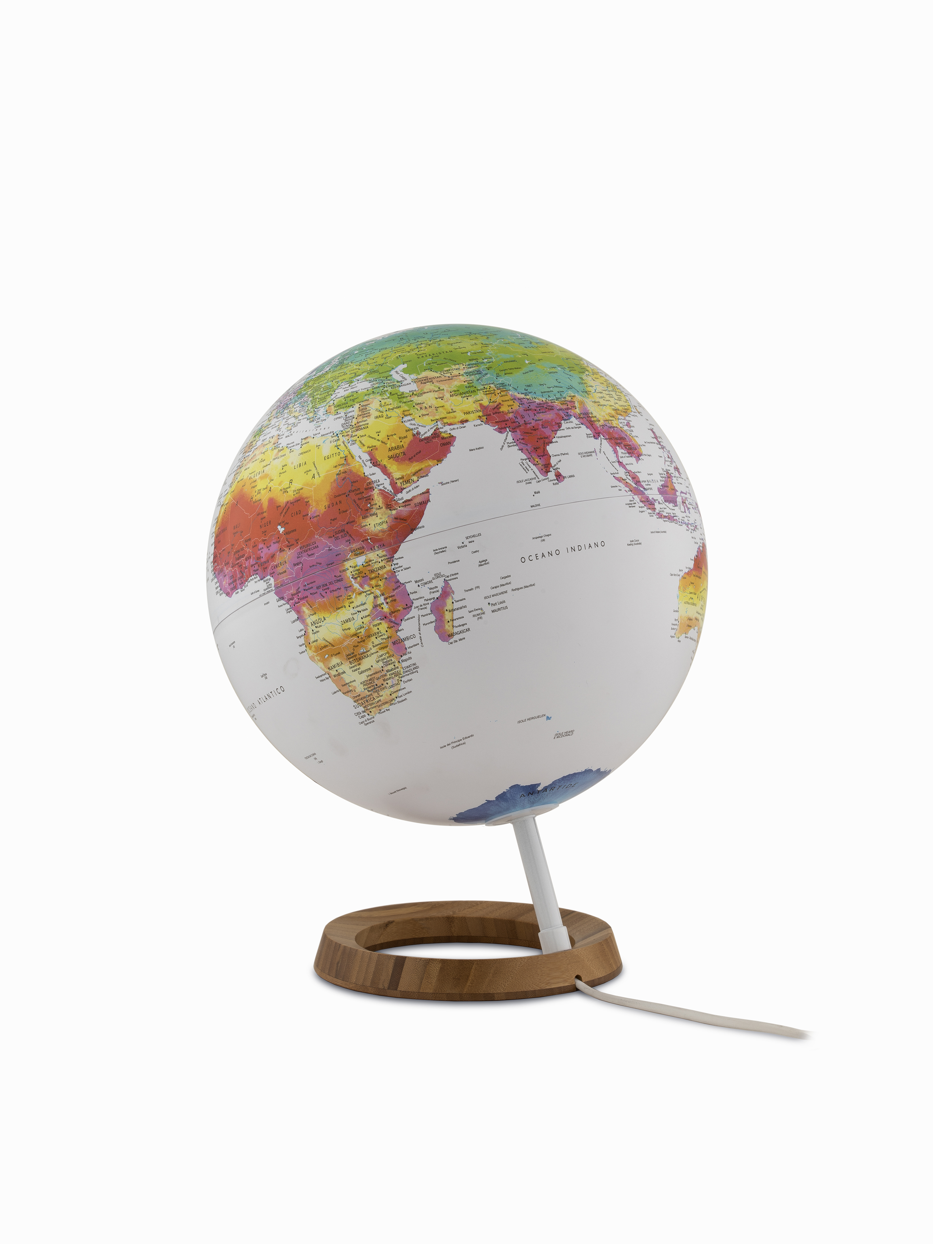 Atmosphere Climate Globe, Kartenbild Klimazonen der Erde, 25 cm Leuchtglobus, ringförmiger Fuß aus Bambus, LED Leuchtmittel 2 W, Text deutsch, weißes Kabel mit Schnurschalter ca. 160 cm.