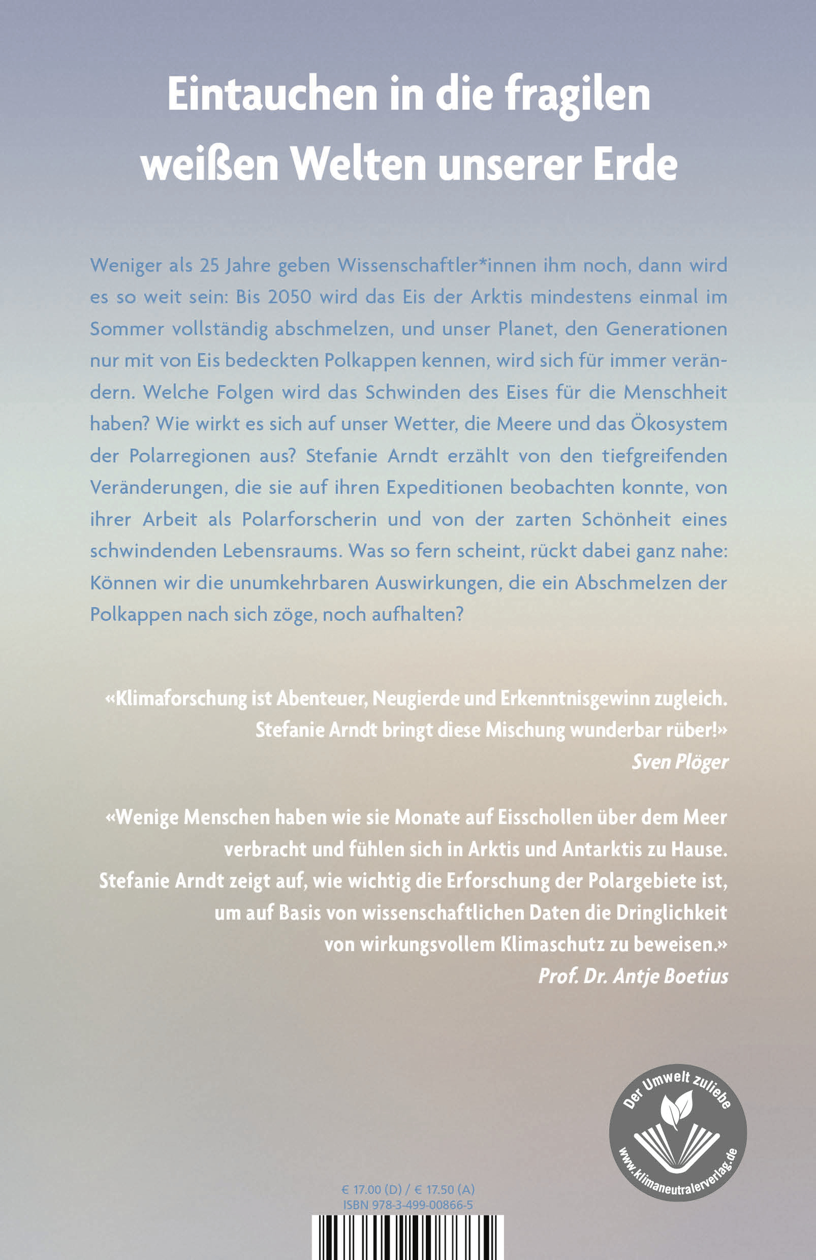 «Wenige Menschen haben wie sie Monate auf Eisschollen über dem Meer verbracht und fühlen sich in Arktis und Antarktis zu Hause. Stefanie Arndt zeigt auf, wie wichtig die Erforschung der Polargebiete ist, um auf Basis von wissenschaftlichen Daten die Dringlichkeit von wirkungsvollem Klimaschutz zu beweisen.»