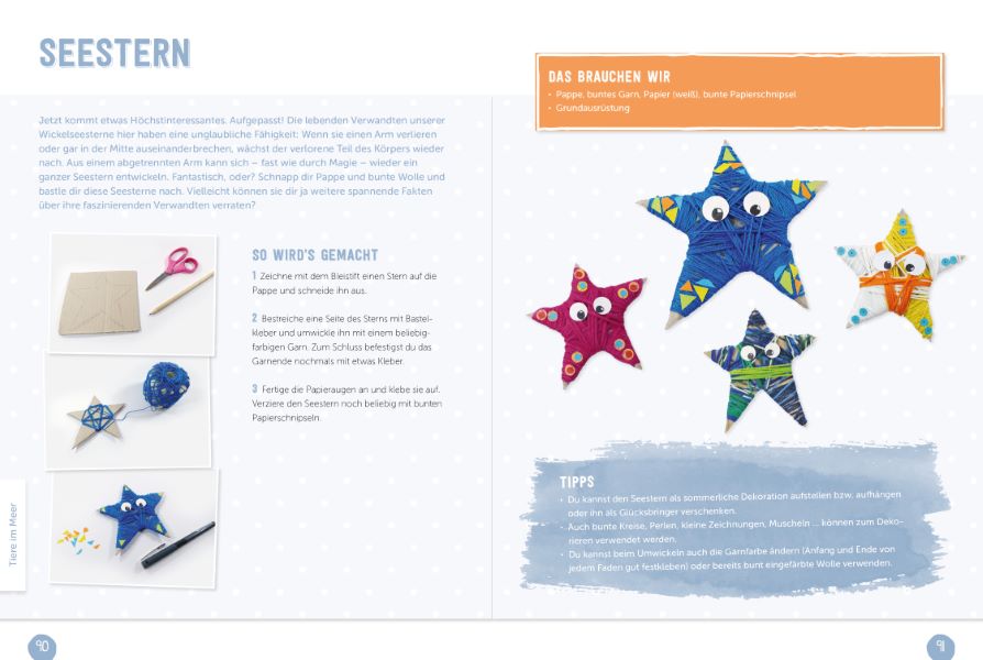 Die Reise geht von Wald zu Wiese durch das Meer bis hin zu fernen Ländern. So entstehen aus Papier, Schnur und Farbe blubbernde Fische, süße Robben, rosa Schweinchen und so viele mehr! Mit dabei sind außerdem Tipps zur Weiterverwendung der gebastelten Werke.
