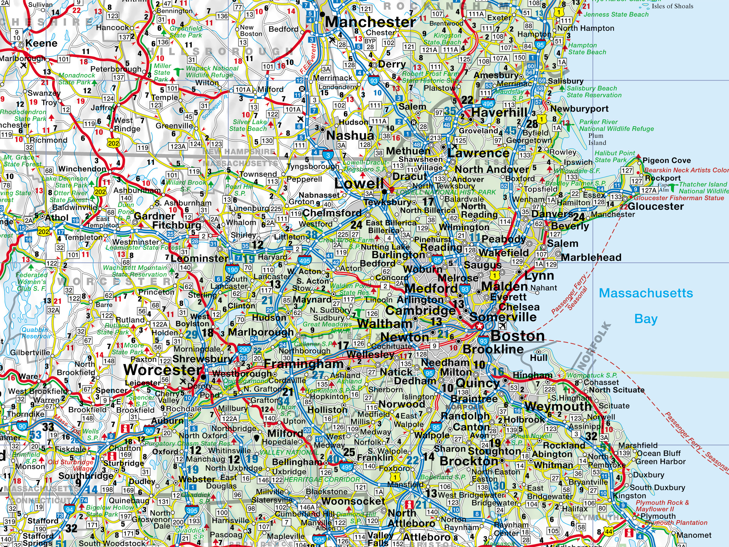 Den Indian Summer im Baxter State Park erleben oder einen Stadtrundgang in Boston unternehmen? Dann ist die BUSCHE MAP New England im Maßstab 1:800 000 der ideale Reisebegleiter. In der Karte eingezeichnet sind beispielsweise Entfernungen sowohl in Kilometern als auch in Meilen, durchschnittliche Fahrtzeiten, Zeitzonengrenzen, Nationalparks, landschaftlich schöne Strecken und Sehenswürdigkeiten. Inklusive Ortsverzeichnis. Anschlusskarten: Südwesten - BUSCHE MAP New York State, Norden - BUSCHE MAP Québec, Nordosten - BUSCHE MAP Atlantic Provinces & Island of Newfoundland.