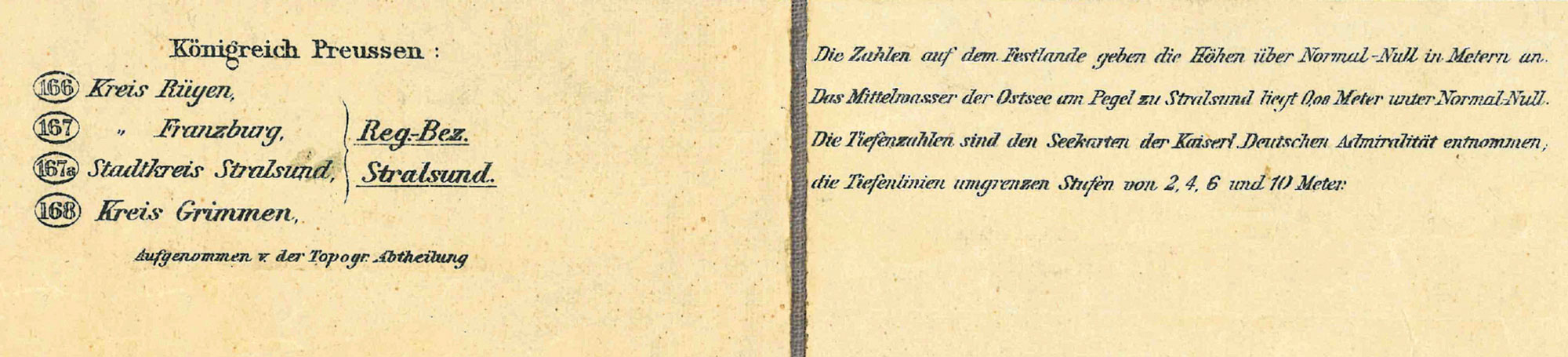- Kartograph Abtheilung der Königl. Preuss. Landesaufnahme 1889. Aufgenommen vom Königl. Preuss. Generalstab. Ergänzt um 1900 - ohne entsprechende Anmerkung auf der Karte! - Hinweis zum Ausgabejahr 1889/1900: Obwohl die Karte mit dem Jahr 1889 datiert ist, zeigt sich dieses Blatt als Ausgabe um 1900. Denn die Rügenschen Kleinbahnen einschließlich aller Haltestationen finden wir auf der Karte eingetragen. Die Bahnlinie wurde zwischen 1895 und 1899 in Betrieb genommen. - Außenformat (Breite x Höhe) 64 x 71 cm- Nachdruck- Lieferung gerollt in einer sehr stabilen Pappversandhülse - bis 72 cm lang - 250 gInformationen:1810 entstand mit Putbus das erste Seebad. Danach weitere Badeorte an der Ostküste, wie Binz, Baabe, Göhren, Sassnitz und Sellin. Durch den Wiener Kongress 1815 kam die Insel Rügen an Preußen. In der Verwaltungsreform 1818 wurde Rügen dem Regierungsbezirk Stralsund zugeordnet und gehörte damit zur preußischen Provinz Pommern. Auf der Karte befinden sich die Kreise Rügen (Nr.166), Franzburg (167), Stadtkreis Stralsund (167a) sowie der Kreis Grimmen (168)