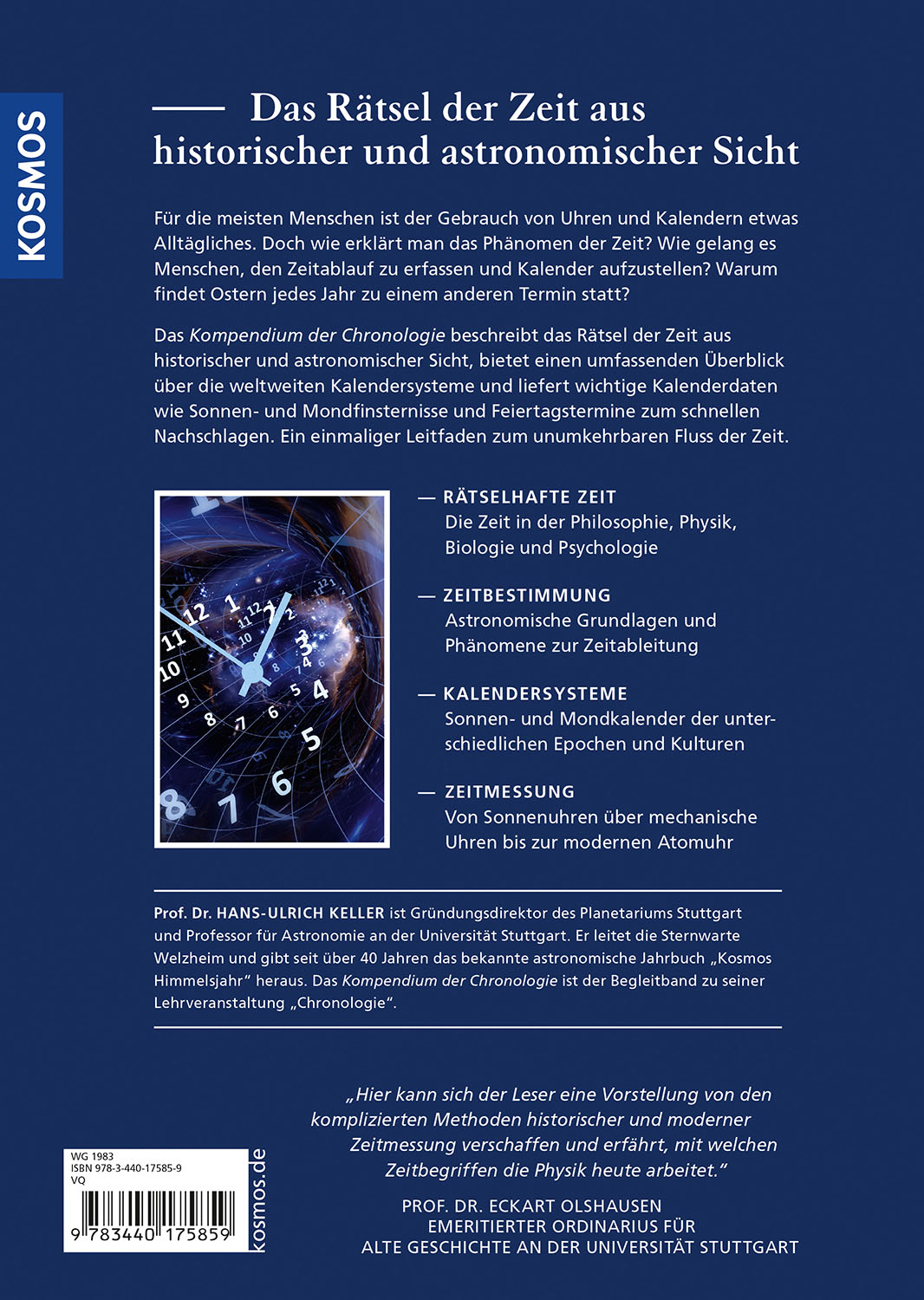 Der renommierte Astronom Prof. Hans-Ulrich Keller bietet in diesem Buch eine einzigartige Gesamtübersicht zum Thema Zeit. "Das Kompendium der Chronologie" erklärt das Rätsel der Zeit aus historischer und astronomischer Sicht, bietet einen umfassenden Überblick über das weltweite Kalenderwissen und versammelt wichtige Kalenderdaten zum schnellen Nachschlagen.