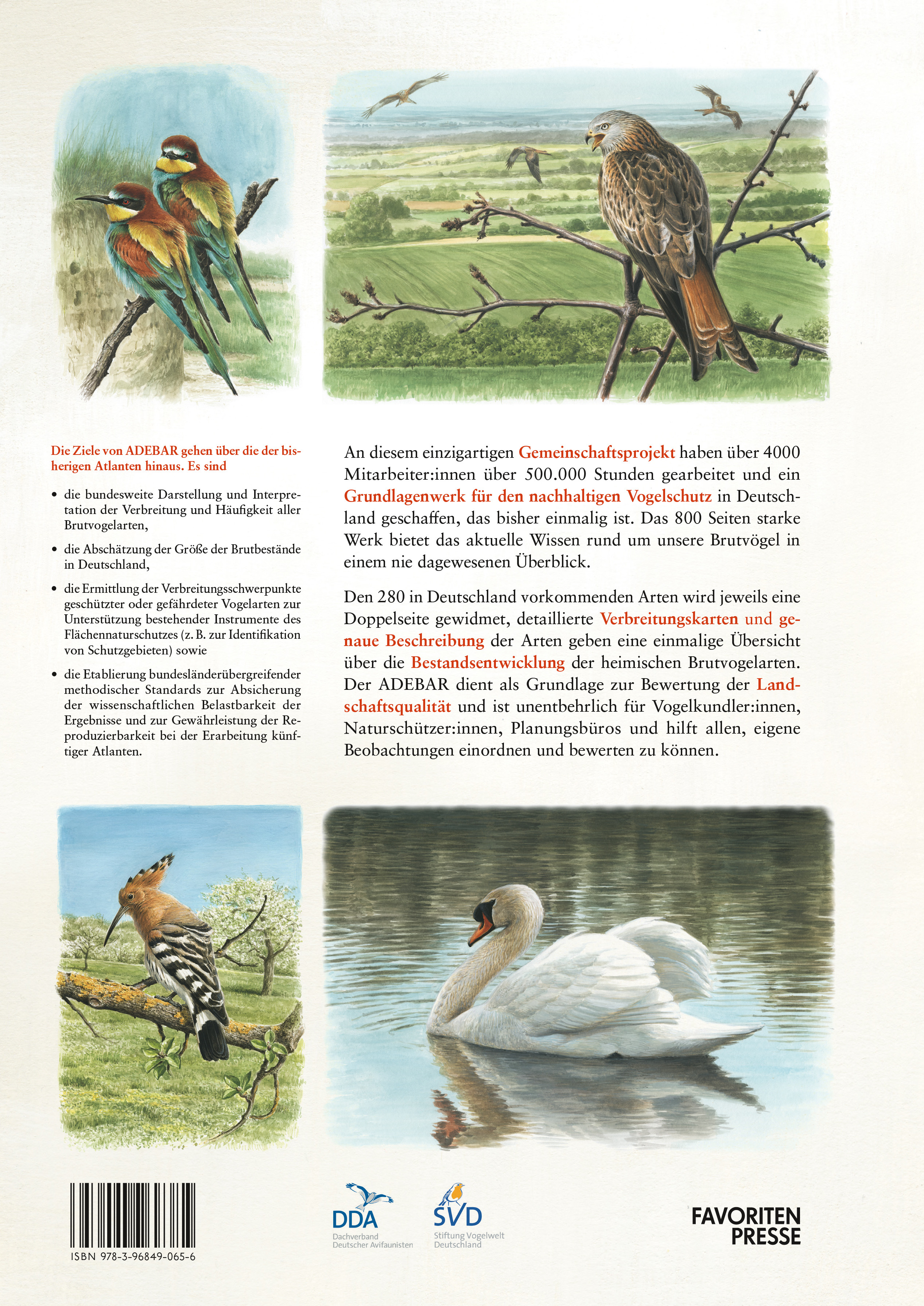 Der ADEBAR dient als Grundlage zur Bewertung der Landschaftsqualität und ist unentbehrlich für Vogelkundler:innen, Naturschützer:innen, Planungsbüros und hilft allen, eigene Beobachtungen einordnen und bewerten zu können.