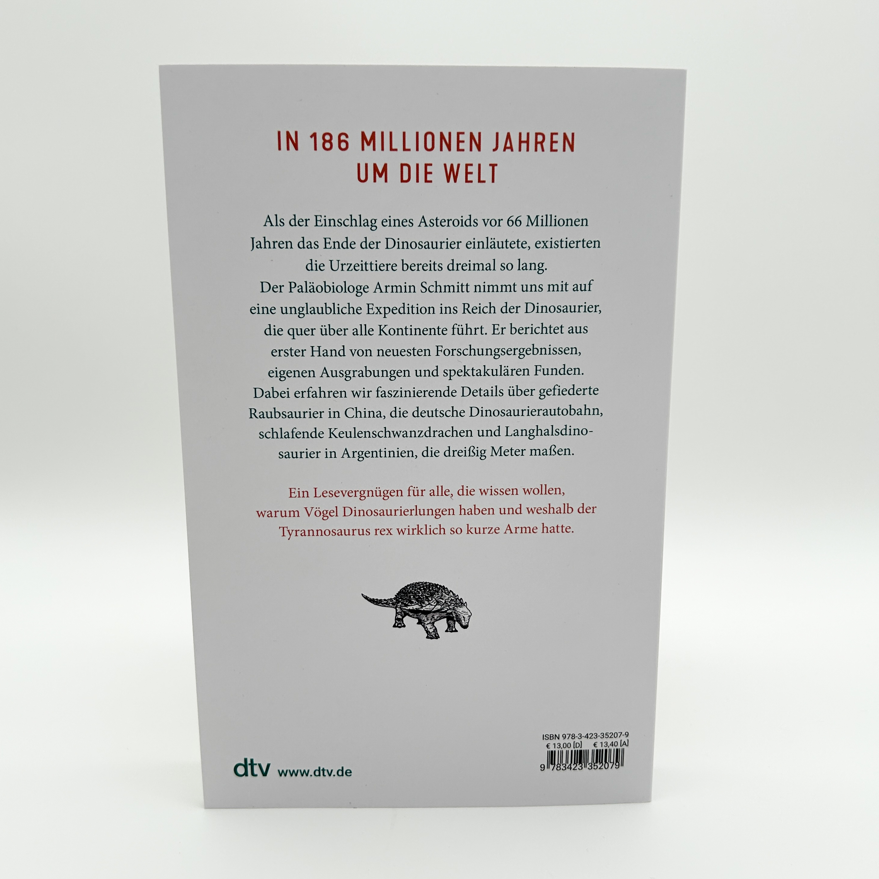 Armin Schmitt, Jahrgang 1972, ist, seit er fünf Jahre alt war, fasziniert von Dinosauriern. Also studierte er Paläontologie u.a. in Bonn. Während dieser Zeit arbeitete er bereits als Sammlungsverwalter im Goldfußmuseum der Universität. Heute ist er Wirbeltierpaläontologe und Forschungsassistent am Geowissenschaftlichen Institut der Universität Oxford sowie Doktorand an der Universität Cambridge. Außerdem hat er für National Geographic über seine Forschung geschrieben und ist gefragter Experte für Dinosaurier in Fernsehen, Radio und Print.