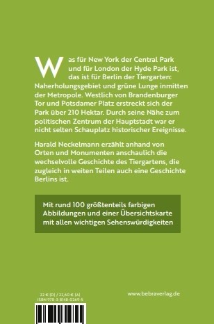 Was für New York der Central Park und für London der Hyde Park ist, das ist für Berlin der Tiergarten: Naherholungsgebiet und grüne Lunge inmitten der Metropole. Im Umfeld von Brandenburger Tor und Potsdamer Platz erstreckt sich der Park über 210 Hektar. Durch seine Nähe zum politischen Zentrum der Hauptstadt war er nicht selten Schauplatz historischer Ereignisse. Harald Neckelmann erzählt anhand von Orten und Monumenten die wechselvolle Geschichte des Tiergartens, die zugleich in weiten Teilen auch eine Geschichte Berlins ist.