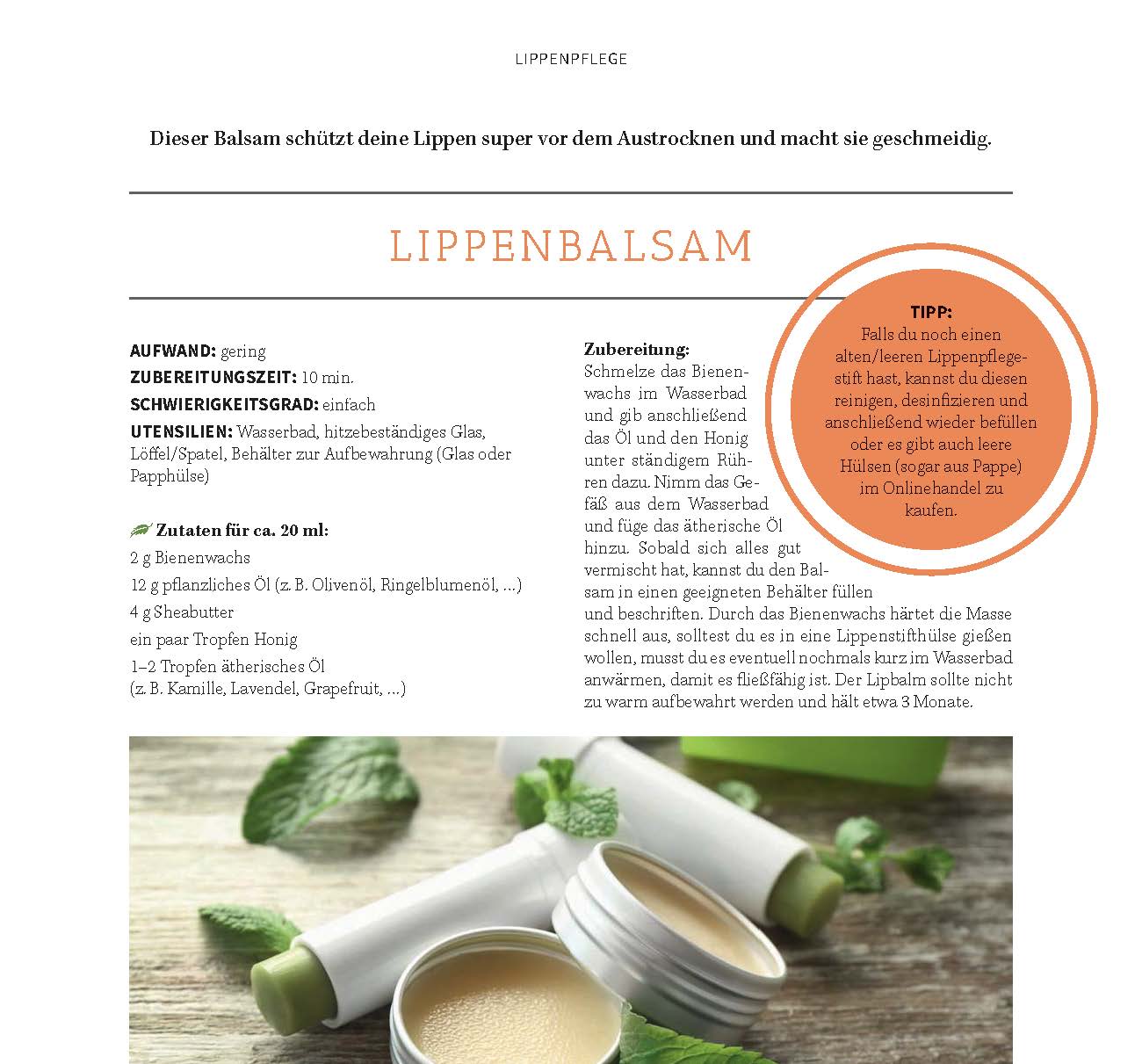 Du möchtest dich in deiner Haut wohlfühlen und bist es leid, chemische Produkte auf deine Haut zu schmieren? Du willst endlich Pflegeprodukte, die genau auf deine Bedürfnisse abgestimmt sind? Und dabei vielleicht auch noch an die Umwelt denken?Dieses Buch erklärt dir, wie du natürliche Pflegeprodukte selber herstellen kannst: von Shampoo über Cremes, Deos und Lippenpflege bis hin zu Zahnpasta, Seife und vielen weiteren Produkten - für Kopf bis Fuß. Du findest verschiedenste Rezepte mit gut verständlichen Schritt-für-Schritt-Anleitungen und vielen Tipps zur Herstellung von Naturkosmetik in deinem Zuhause.