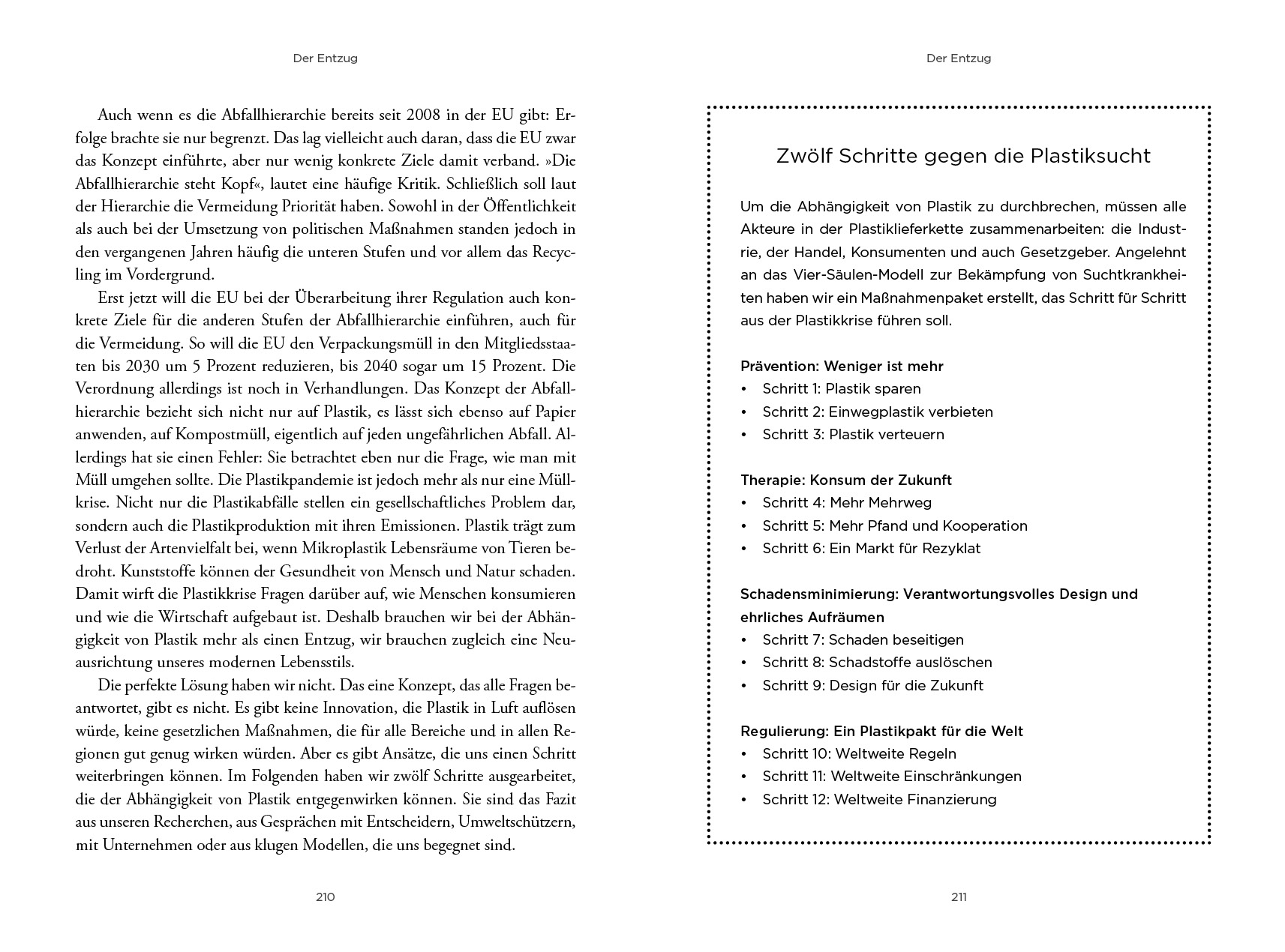 "Jacqueline Goebel und Benedict Wermter haben jahrelang zu Plastikindustrie und Kreislaufwirtschaft recherchiert. In ihrem Buch [...] zeigen sie schonungslos die Methoden und Probleme der Industrie auf - und erklären, wie wir uns der Plastikkrise endlich entziehen können."