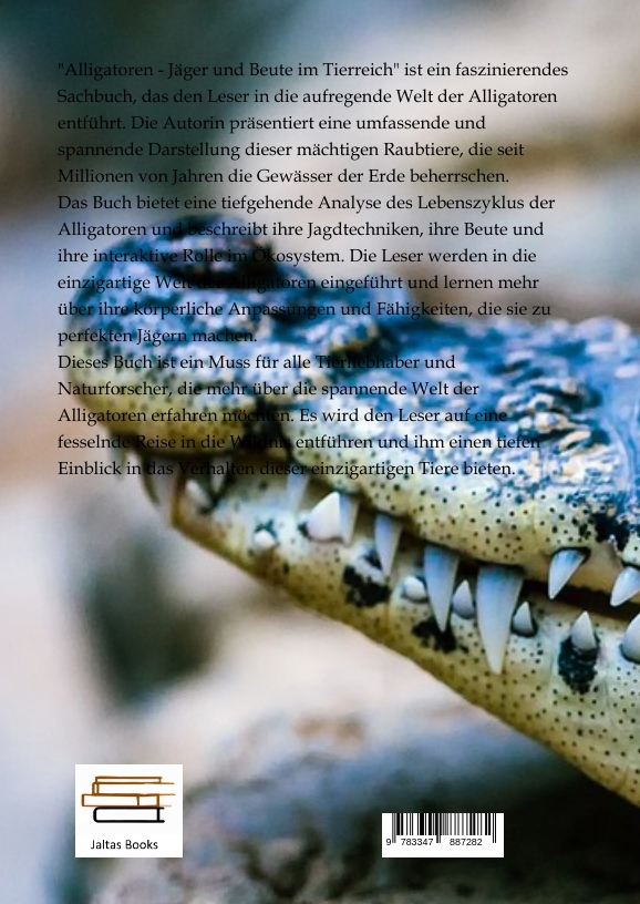 "Alligatoren - Jäger und Beute im Tierreich" ist ein faszinierendes Sachbuch, das den Leser in die aufregende Welt der Alligatoren entführt. Die Autorin präsentiert eine umfassende und spannende Darstellung dieser mächtigen Raubtiere, die seit Millionen von Jahren die Gewässer der Erde beherrschen.Das Buch bietet eine tiefgehende Analyse des Lebenszyklus der Alligatoren und beschreibt ihre Jagdtechniken, ihre Beute und ihre interaktive Rolle im Ökosystem. Die Leser werden in die einzigartige Welt der Alligatoren eingeführt und lernen mehr über ihre körperliche Anpassungen und Fähigkeiten, die sie zu perfekten Jägern machen.Dieses Buch ist ein Muss für alle Tierliebhaber und Naturforscher, die mehr über die spannende Welt der Alligatoren erfahren möchten. Es wird den Leser auf eine fesselnde Reise in die Wildnis entführen und ihm einen tiefen Einblick in das Verhalten dieser einzigartigen Tiere bieten.