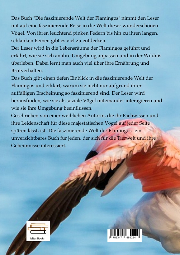 Das Buch "Die faszinierende Welt der Flamingos" nimmt den Leser mit auf eine faszinierende Reise in die Welt dieser wunderschönen Vögel. Von ihren leuchtend pinken Federn bis hin zu ihren langen, schlanken Beinen gibt es viel zu entdecken.Der Leser wird in die Lebensräume der Flamingos geführt und erfährt, wie sie sich an ihre Umgebung anpassen und in der Wildnis überleben. Dabei lernt man auch viel über ihre Ernährung und Brutverhalten.Das Buch gibt einen tiefen Einblick in die faszinierende Welt der Flamingos und erklärt, warum sie nicht nur aufgrund ihrer auffälligen Erscheinung so faszinierend sind. Der Leser wird herausfinden, wie sie als soziale Vögel miteinander interagieren und wie sie ihre Umgebung beeinflussen.Geschrieben von einer weiblichen Autorin, die ihr Fachwissen und ihre Leidenschaft für diese majestätischen Vögel auf jeder Seite spüren lässt, ist "Die faszinierende Welt der Flamingos" ein unverzichtbares Buch für jeden, der sich für die Tierwelt und ihre Geheimnisse interessiert.