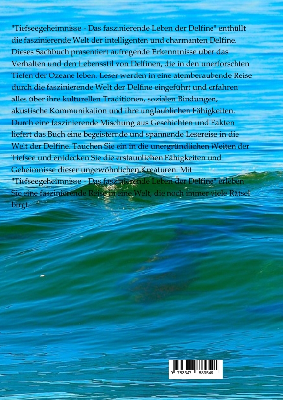 "Tiefseegeheimnisse - Das faszinierende Leben der Delfine" enthüllt die faszinierende Welt der intelligenten und charmanten Delfine. Dieses Sachbuch präsentiert aufregende Erkenntnisse über das Verhalten und den Lebensstil von Delfinen, die in den unerforschten Tiefen der Ozeane leben. Leser werden in eine atemberaubende Reise durch die faszinierende Welt der Delfine eingeführt und erfahren alles über ihre kulturellen Traditionen, sozialen Bindungen, akustische Kommunikation und ihre unglaublichen Fähigkeiten.Durch eine faszinierende Mischung aus Geschichten und Fakten liefert das Buch eine begeisternde und spannende Lesereise in die Welt der Delfine. Tauchen Sie ein in die unergründlichen Weiten der Tiefsee und entdecken Sie die erstaunlichen Fähigkeiten und Geheimnisse dieser ungewöhnlichen Kreaturen. Mit "Tiefseegeheimnisse - Das faszinierende Leben der Delfine" erleben Sie eine faszinierende Reise in eine Welt, die noch immer viele Rätsel birgt.