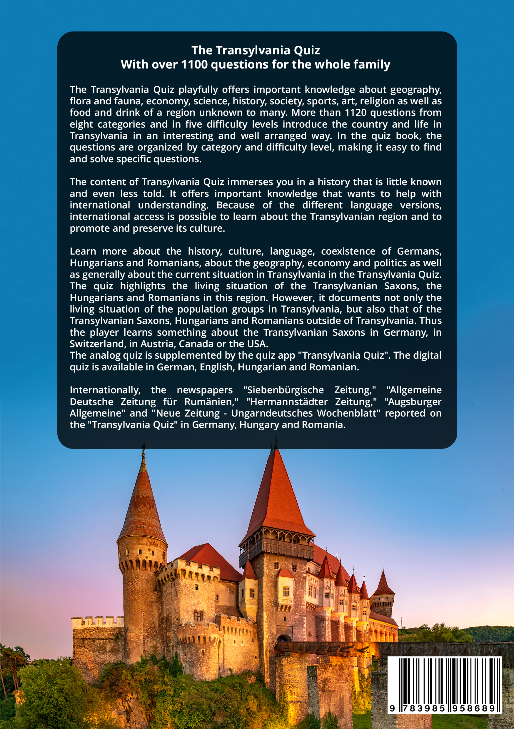 The quiz is conceived in the sense of Klafki's categorical concept of education and is intended to impart knowledge in an exemplary way in order to gain a better understanding of Transylvania with ist different population groups. So that everyone can participate, the quiz was written in German and English. This app was developed by a multicultural team with different ethnic backgrounds. The goal is to present all ethnic perspectives on Transylvania in a balanced and critical way. With the collected knowledge the self-determination, co-determination and solidarity but also the cultural preservation of Transylvania and its ethnic groups shall be promoted.