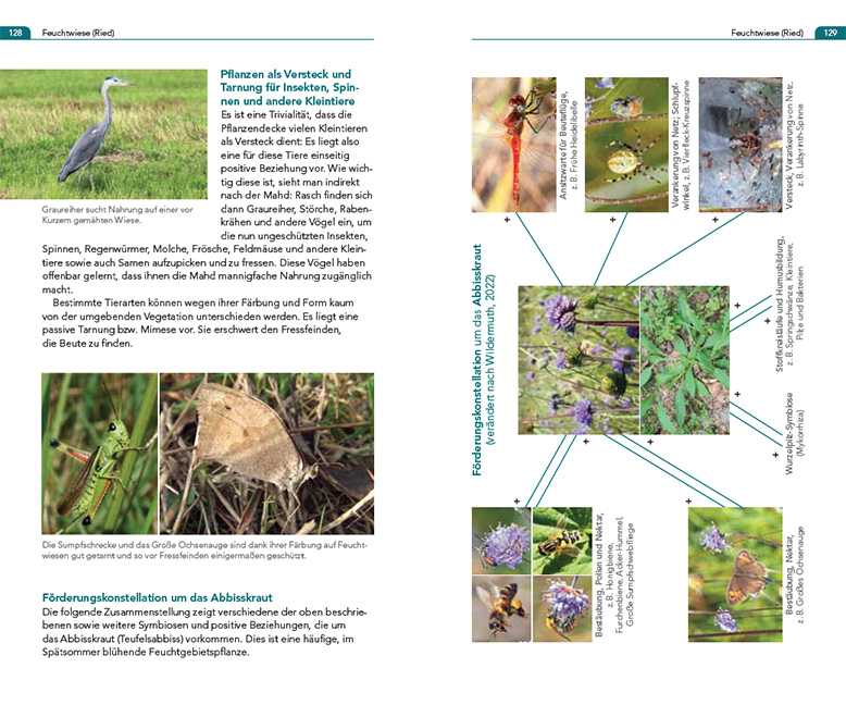 Die Vielfalt und die Komplexität der Symbiosen in der heimischen Natur können die Betrachtenden zum Staunen bringen: Blütenbestäubung durch Insekten, Samenausbreitung durch Tiere, symbiotische Wurzelpilze, Abbau von Falllaub und Totholz, Pflanzen als Schlafstätten, als Rendezvous-Platz für Männchen und Weibchen, als Versteck oder als Ablageort für Eier oder Laich.