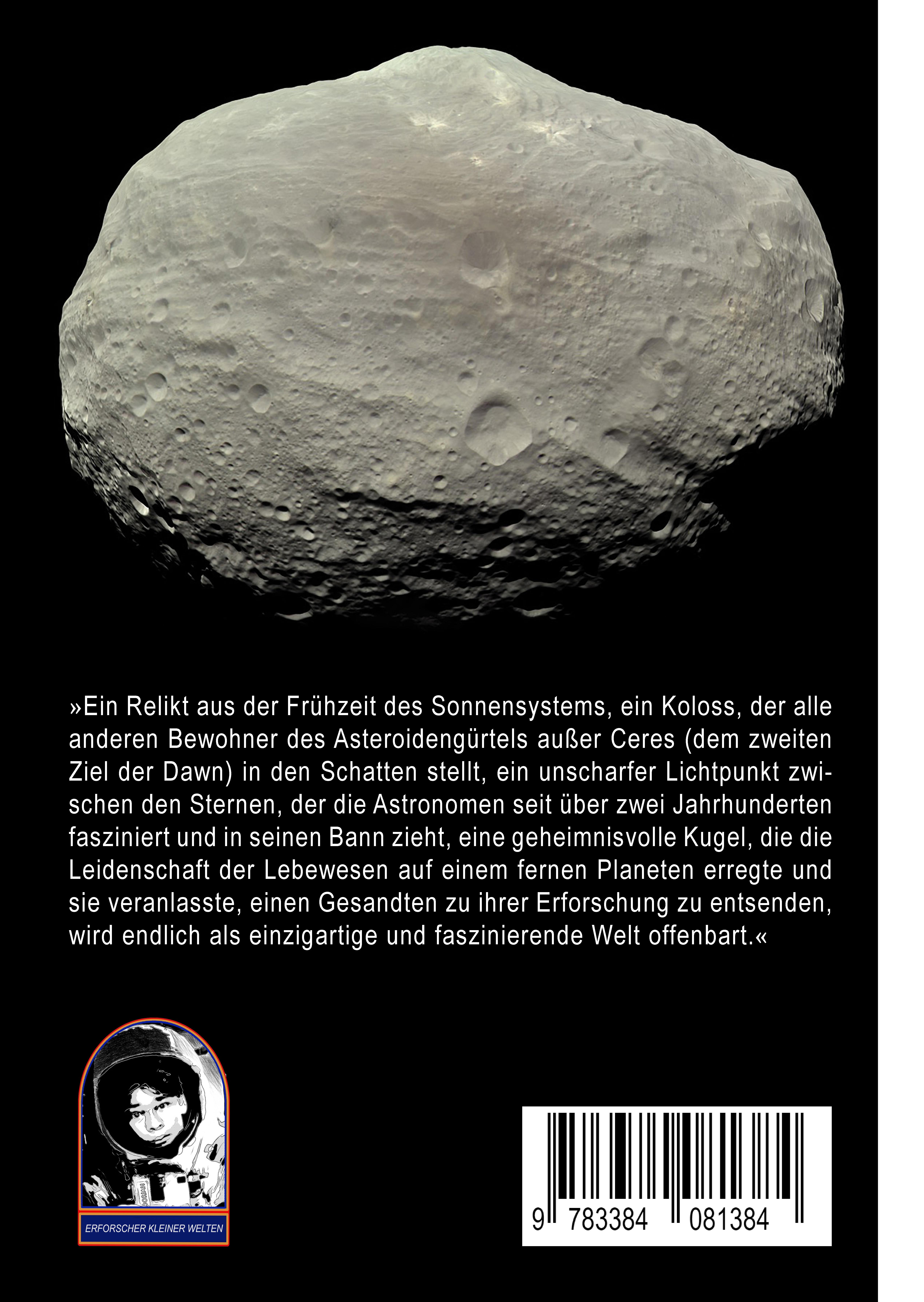 »Ein Relikt aus der Frühzeit des Sonnensystems, ein Koloss, der alle anderen Bewohner des Asteroidengürtels außer Ceres (dem zweiten Ziel der Dawn) in den Schatten stellt, ein unscharfer Lichtpunkt zwischen den Sternen, der die Astronomen seit über zwei Jahrhunderten fasziniert und in seinen Bann zieht, eine geheimnisvolle Kugel, die die Leidenschaft der Lebewesen auf einem fernen Planeten erregte und sie veranlasste, einen Gesandten zu ihrer Erforschung zu entsenden, wird endlich als einzigartige und faszinierende Welt offenbart.«
