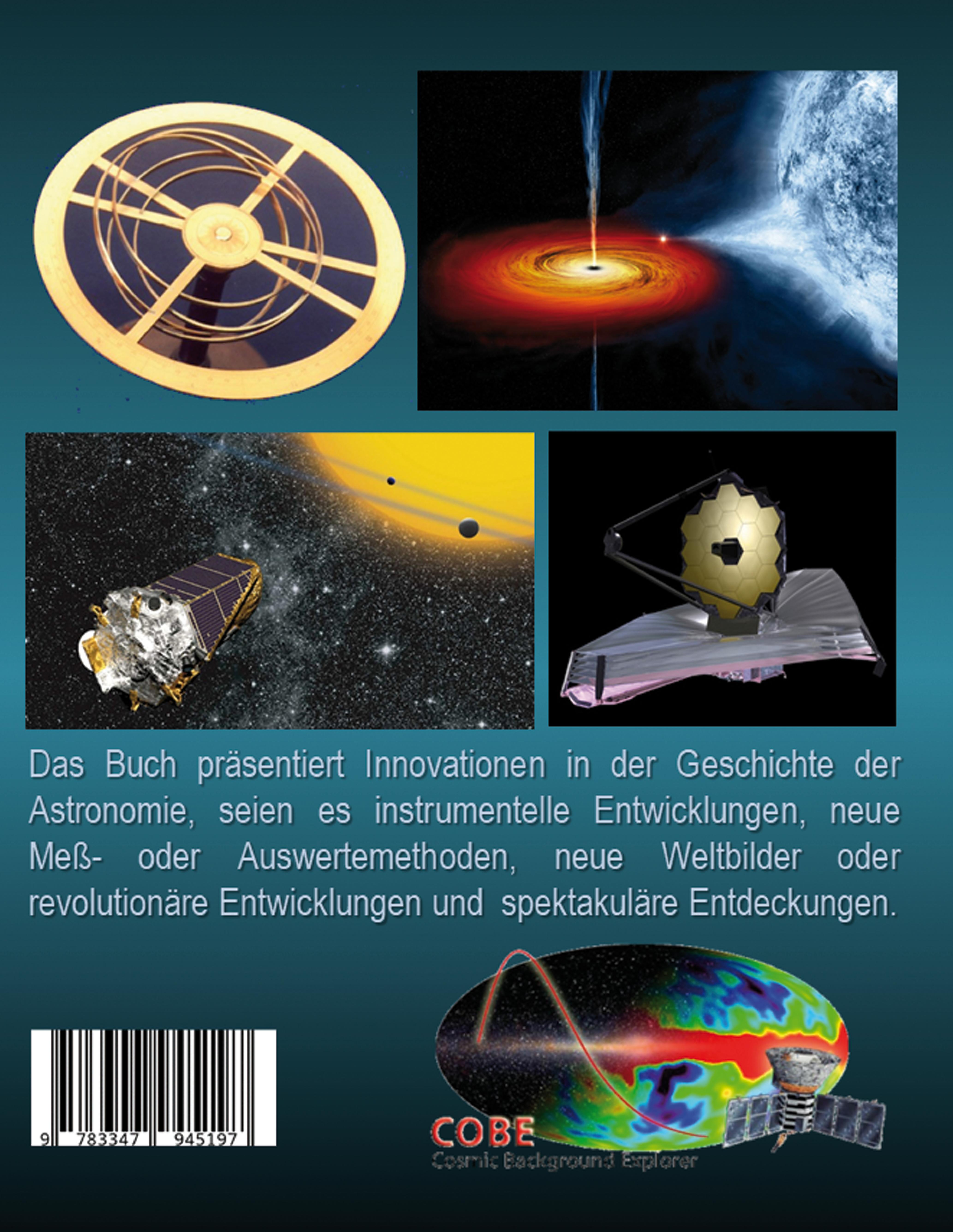 Diese Monographie bietet Raum, den Innovationen in der Geschichte der Astronomie gebündelt nachzugehen, seien es instrumentelle Entwicklungen, neue Meß- oder Auswertemethoden, neue Weltbilder oder revolutionäre Entwicklungen und spektakuläre Entdeckungen, und damit Material für weitere wissenschaftstheoretische und philosophische Überlegungen bereitzustellen. Das einführende Kapitel von Gudrun Wolfschmidt präsentiert exemplarisch zahlreiche Beispiele und Highlights zu den verschiedenen Themen. Die nächsten beiden Artikel widmen sich der Bremer und Lilienthaler Geschichte des Tagungsortes. Hans-Joachim Leue stellt das grösste Fernrohr des Kontinents, das berühmte Lilienthaler 27-füßige Spiegelteleskop (1793) von Johann Hieronymus Schroeter (1745-1816) vor. Er thematisiert dabei nicht nur den eindrucksvollen Nachbau (2015), sondern die ganze Entwicklung der Lilienthaler Sternwarte einschliesslich der hervorragenden instrumentellen Ausstattung. Katrin Cura berichtet über die Innovativen Ideen von Wilhelm Olbers Focke (1834-1922), Arzt und Botaniker, Urenkel des Astronomen und Arztes Wilhelm Olbers. W. O. Focke machte Ernst Haeckel (1834-1919) auf die Evolutionstheorie Charles Darwins aufmerksam und zitierte 1881 Gregor Mendels Werk über die Vererbung, seine Erbsenforschung, die damit ins Bewusstsein der Biologen um 1900 kam.Es folgen drei Beiträge zu Modellen des Kosmos. Astrid Wokke untersucht geometrische Muster im Schmuck der nordischen Bronzezeit und findet Kreissysteme, die eine projizierte Himmelskugel bilden, Grundlage des Astrolabiums, und Hinweise auf astronomisches Wissen - basierend auf den Ideen von Dechend & Santillana: Hamlet's Mill (1969). Karsten Markus-Schnabel berichtet kurz über die Sternkammer in Lübeck mit einem einzigartigen Planetariumsprojektor (1931). Romke Schievink stellt das älteste funktionierende optische Planetarium Zeiss Modell 1b vor, das 1934 in Den Haag installiert wurde; das Instrument wurde nach einem Brand 1976 von aussen restauriert und projiziert heute in Bruchhausen-Vilsen eindrucksvoll den Sternhimmel mit Milchstrasse wie vor 100 Jahren das Wunder von Jena.Im folgenden werden fünf Beiträge zur Astronomiegeschichte vom Mittelalter bis zum Beginn der Astrophysik behandelt. Regina Umland gibt Einblick in die Fortschritte in der Astronomie durch indisch-arabische Ziffern und das Stellenwertsystem. Michael Hiermanseder gibt Drei Briefe von Johann Jakob von Marinoni (1676-1755) wieder, die seine Sternwarte und seine innovativen Instrumente genau beschreiben. Björn Kunzmann informiert über Veränderliche Sterne als Meilensteine in der Geschichte der Astrophysik mit den Beispielen Mira, Algol und eta Carinae. Dietrich Lemke präsentiert Johannes Hartmann (1865-1936) als Entdecker der Interstellaren Materie. Kalevi Mattila zeigt die Reaktionen auf Johannes Hartmanns Entdeckung - Zweifler, Konkurrenten und Vollender.Moderne Entwicklungen der Astrophysik werden in den letzten drei Artikeln geschildert. Rita Meyer-Spasche stellt die Bedeutung von Eberhard Hopf (1902-1983) für die Entwicklung der mathematischen Astronomie und Astrophysik vor. Carsten Busch berichtet eindrucksvoll Wie Schwarze Löcher ihre Schwärze verloren - Zur Entstehung der Thermodynamik Schwarzer Löcher. Susanne M. Hoffmann widmet sich dem aktuellen interessanten Thema Innovation "EHT" - Geschichte der Instrumente, Methoden, Entdeckung(en). Im Anhang wird - ausser dem Tagungsprogramm - die Astronomie und ihre bemerkenswerte Geschichte in Bremen und Lilienthal überblicksartig dargestellt (mit Links und Adressen) - ein Astro Walk, der zum selbst erkunden einlädt.