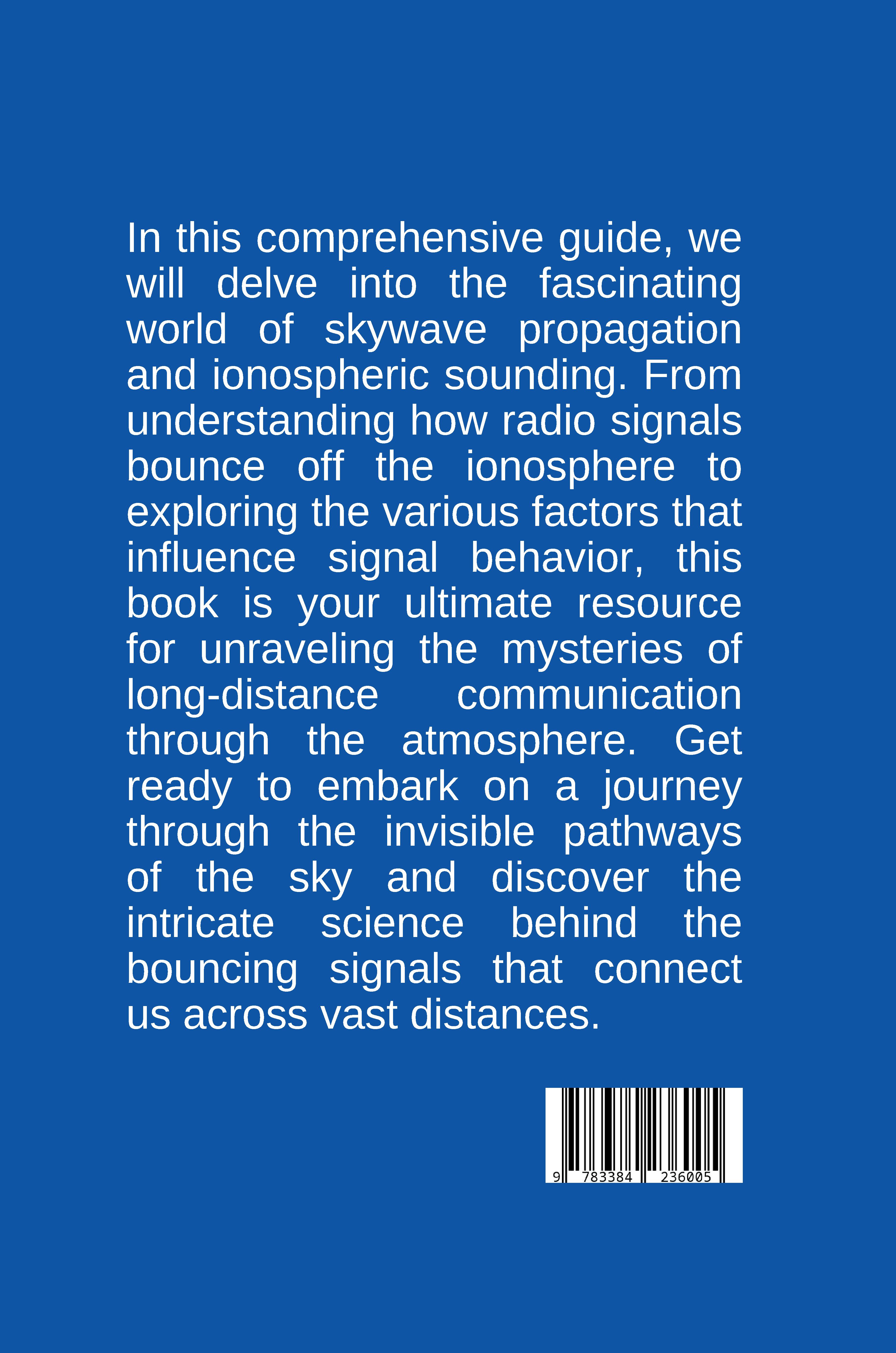 "Bouncing Signals" dives into the fascinating world of long-distance radio communication using skywaves. These signals bounce off the ionosphere, Earth's invisible layer charged with particles. The book explains how this ionosphere acts like a mirror, reflecting radio waves back to Earth, allowing signals to travel far beyond the horizon. You'll also learn about ionospheric sounding, a technique to understand the ever-changing ionosphere and predict how well your radio signals will bounce. Whether you're a ham radio operator, a radio enthusiast, or just curious about how long-distance radio works, "Bouncing Signals" will guide you through the science and practical applications of skywave propagation.