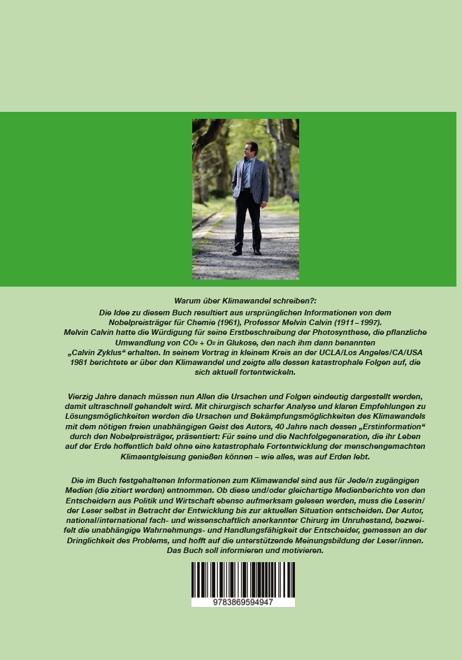 Der Klimawandel ist in aller Munde, mit unterschiedlichen Betonungen von Übertreibungen einerseits bis zur Ignoranz andererseits. Es ist höchste Zeit, Klarheit zu schaffen und mit Allen sinnvoll zu handeln. Zur Handlungs-Motivation gehört Wissen und Überzeugung. Das Buch „Klimawandel!“ liefert gesicherte Informationen, die im Prinzip Jedem aus unserer Gesellschaft zugängig sind, aber vielfach ignoriert werden. Die Informationsquellen zu „Klimawandel!“ sind die öffentlichen nach journalistischen Wahrheitsprinzipien berichtenden Medien: Zeitungen und Zeitschriften, öffentlich kontrollierter/s Rundfunk und -Fernsehen sowie seriöse digitale Medien einschließlich der Mitteilungen von Verbänden und Institutionen. - Das Buch vermittelt dem Leser / der Leserin sachlich die wissenschaftlich fundierten Belege zum Klimawandel und die Fakten, die zur Verursachung und zur Bekämpfung beitragen, akkurat und strukturiert wie in einem einfach lesbaren Lehrbuch. Alle Aussagen sind nachvollziehbar zitiert und damit im Einzelnen nachprüfbar. Medienaussagen, die nicht überprüfbare Behauptungen vermitteln wollen, dienten nicht zur Information. Aus den Informationen wurde vom wissenschaftlich profilierten Autor eine nachvollziehbare Meinung mit vertretbarer Schlussfolgerung/Aufgabenstellung formuliert. Alle Aussagen zu „Klimawandel!“, der jetzt abläuft, dürften großes Interesse hervorrufen.