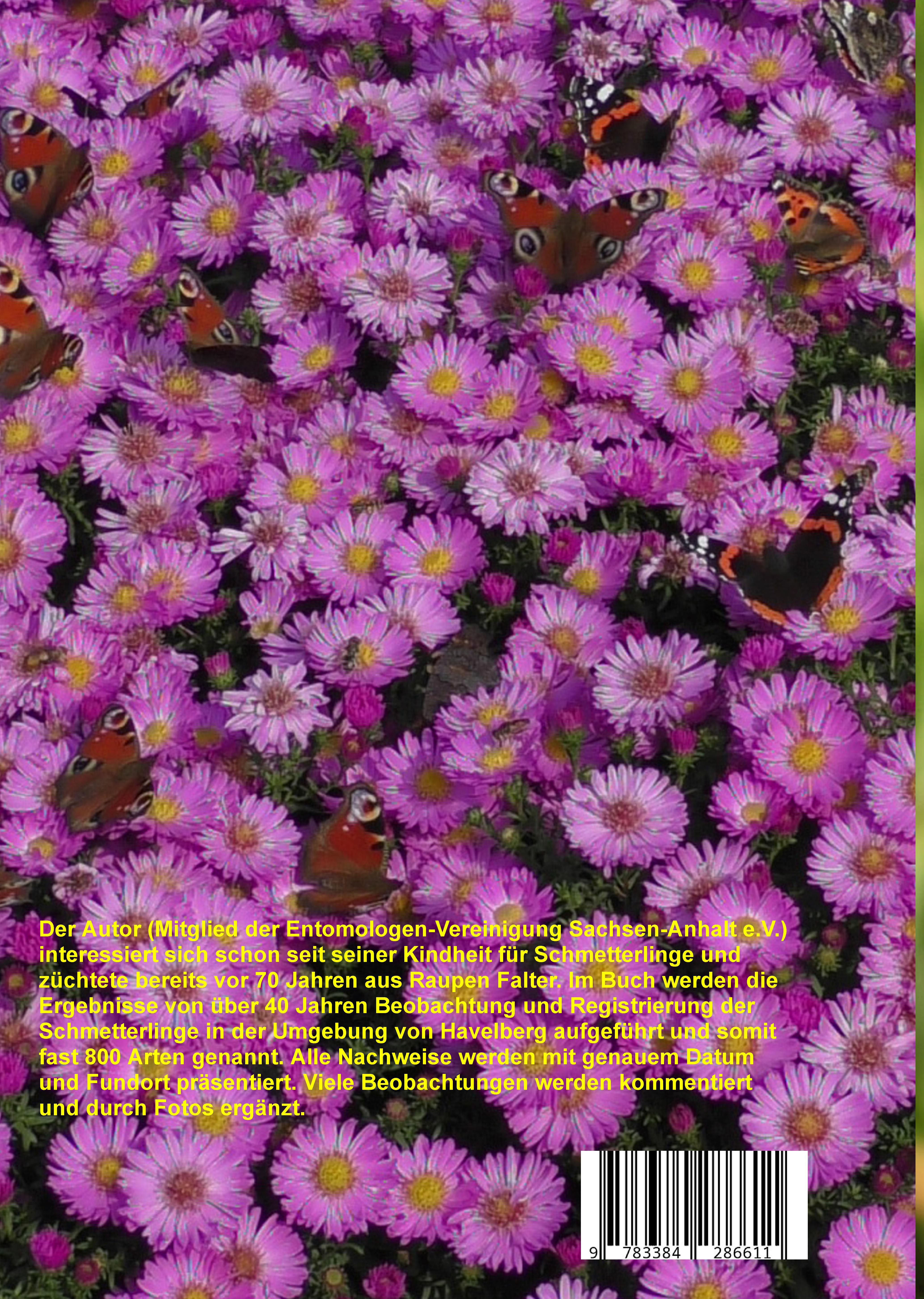 Der Autor (Mitglied der Entomologen-Vereinigung Sachsen-Anhalt e.V.) interessiert sich schon seit seiner Kindheit für Schmetterlinge und züchtete damals bereits aus Raupen Falter. Bereits vor 70 Jahren gab es einen intensiven Kontakt zum Bearbeiter der Insekten im Naturkundemuseum in Görlitz. Im Buch werden die Ergebnisse von über 40 Jahren Beobachtung und Registrierung der Schmetterlinge in der Umgebung von Havelberg aufgeführt und somit ca. 800 Arten genannt. Alle Nachweise werden mit genauem Datum und Fundort präsentiert. Viele Beobachtungen werden kommentiert und durch Fotos ergänzt. Einen umfangreichen Platz nehmen einige Betrachtungen zum Vorkommen des Eichenprozessionsspinners ein, da hierzu in den Medien Horrormeldungen und Hysterie die Gefährlichkeit dieser Art immer wieder übertreiben. Durch ein umfangreiches Register (mit den wissenschaftlichen und auch deutschen Namen) findet der Leser schnell die gesuchte Art im Text und somit die Vorkommen in der behandelten Region.