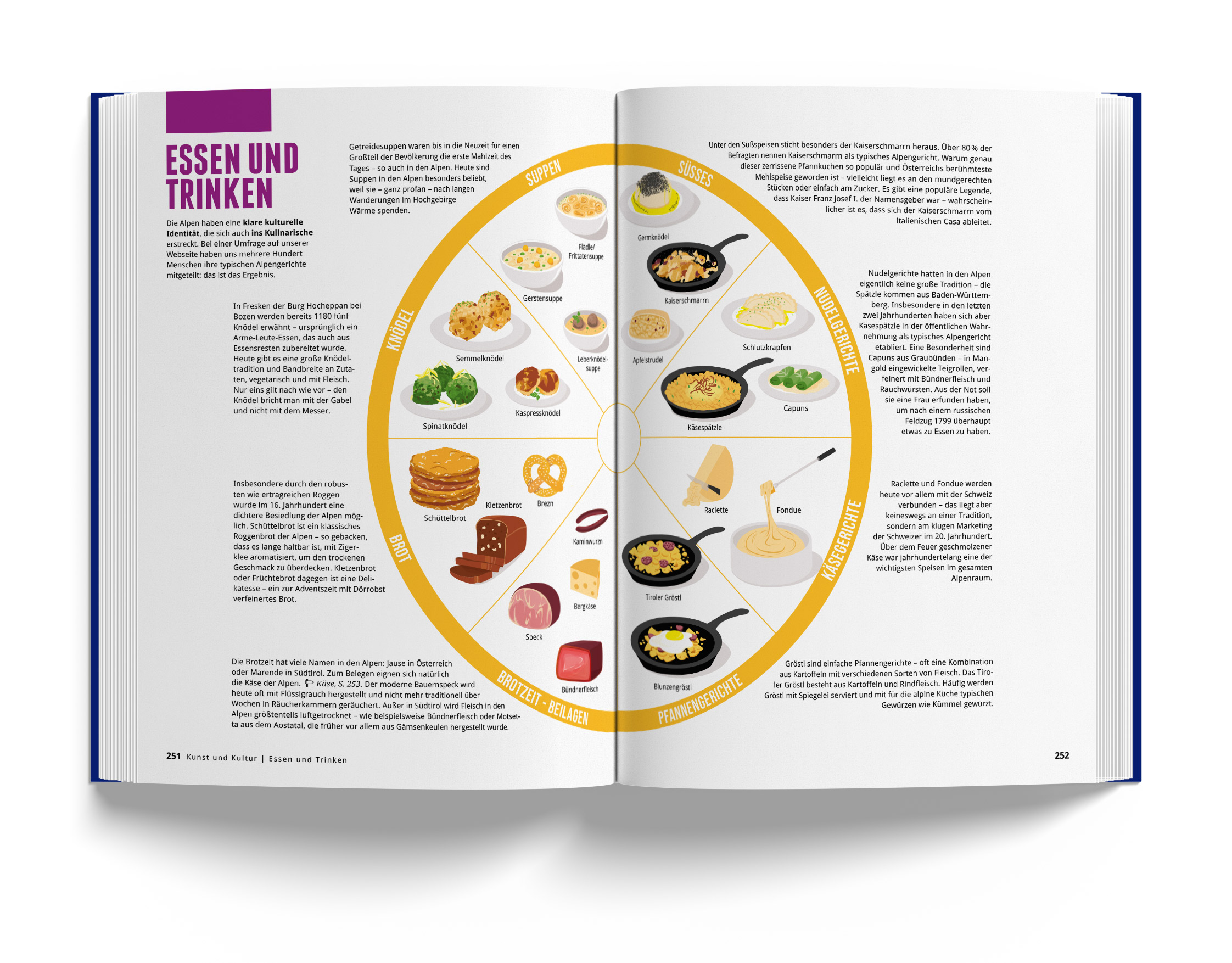 Das Alpenbuch vermittelt auf vergnügliche Art ein tieferes Verständnis für die Alpen. 290 Seiten mit hunderten Infografiken und Illustrationen laden zum Stöbern und Entdecken ein. Über alle Grenzen hinweg blickt das Buch auf die Alpen als einen einzigartigen Kulturraum: Von Geografie bis zu Kulinarik, von Skisport bis zu Mythen und Legenden, von Tieren über Naturschutz bis zu Alpinismus, in Zusammenarbeit mit den Alpenvereinen aus Deutschland, Österreich und Südtirol. Ein Buch für alle, die sich für die Alpen interessieren - ob sie nun die höchsten Gipfel erklettern oder von unten hinaufschauen.