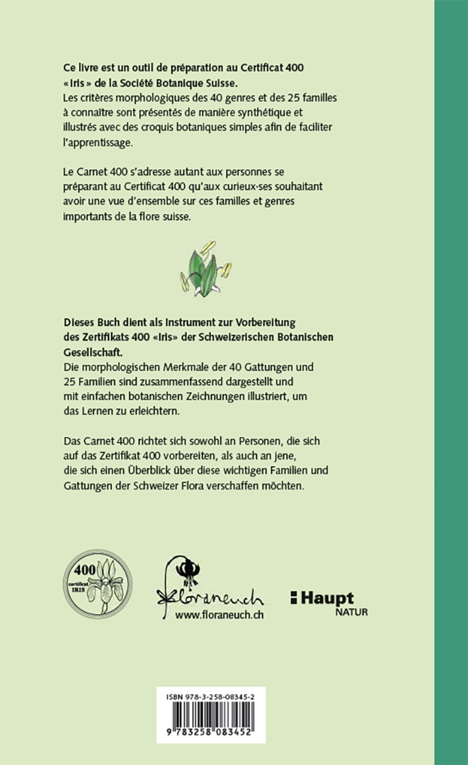 Das «Carnet Iris» richtet sich sowohl an Personen, die sich auf das Zertifikat 400 vorbereiten, als auch an Neugierige, die sich einen Überblick über diese wichtigsten Familien und Gattungen und um Sicherheit in deren Ansprache verschaffen möchten.