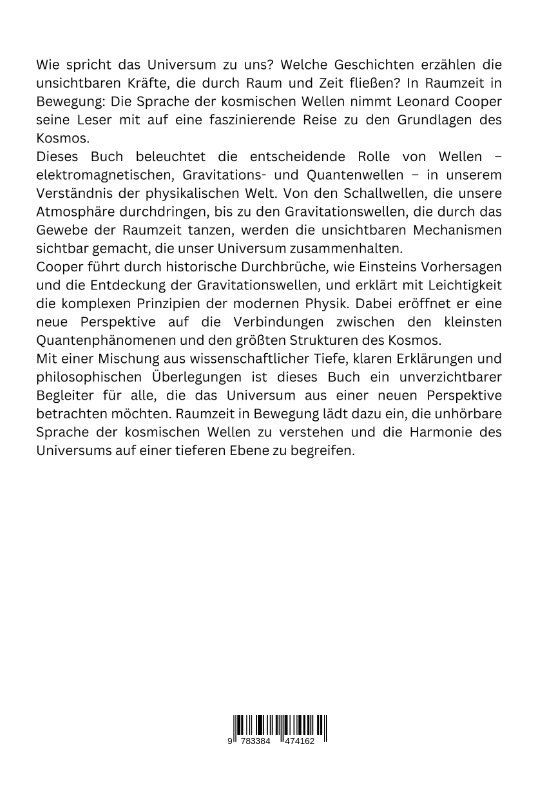 Wie spricht das Universum zu uns? Welche Geschichten erzählen die unsichtbaren Kräfte, die durch Raum und Zeit fließen? In Raumzeit in Bewegung: Die Sprache der kosmischen Wellen nimmt Leonard Cooper seine Leser mit auf eine faszinierende Reise zu den Grundlagen des Kosmos.Dieses Buch beleuchtet die entscheidende Rolle von Wellen - elektromagnetischen, Gravitations- und Quantenwellen - in unserem Verständnis der physikalischen Welt. Von den Schallwellen, die unsere Atmosphäre durchdringen, bis zu den Gravitationswellen, die durch das Gewebe der Raumzeit tanzen, werden die unsichtbaren Mechanismen sichtbar gemacht, die unser Universum zusammenhalten.Cooper führt durch historische Durchbrüche, wie Einsteins Vorhersagen und die Entdeckung der Gravitationswellen, und erklärt mit Leichtigkeit die komplexen Prinzipien der modernen Physik. Dabei eröffnet er eine neue Perspektive auf die Verbindungen zwischen den kleinsten Quantenphänomenen und den größten Strukturen des Kosmos.Mit einer Mischung aus wissenschaftlicher Tiefe, klaren Erklärungen und philosophischen Überlegungen ist dieses Buch ein unverzichtbarer Begleiter für alle, die das Universum aus einer neuen Perspektive betrachten möchten. Raumzeit in Bewegung lädt dazu ein, die unhörbare Sprache der kosmischen Wellen zu verstehen und die Harmonie des Universums auf einer tieferen Ebene zu begreifen.