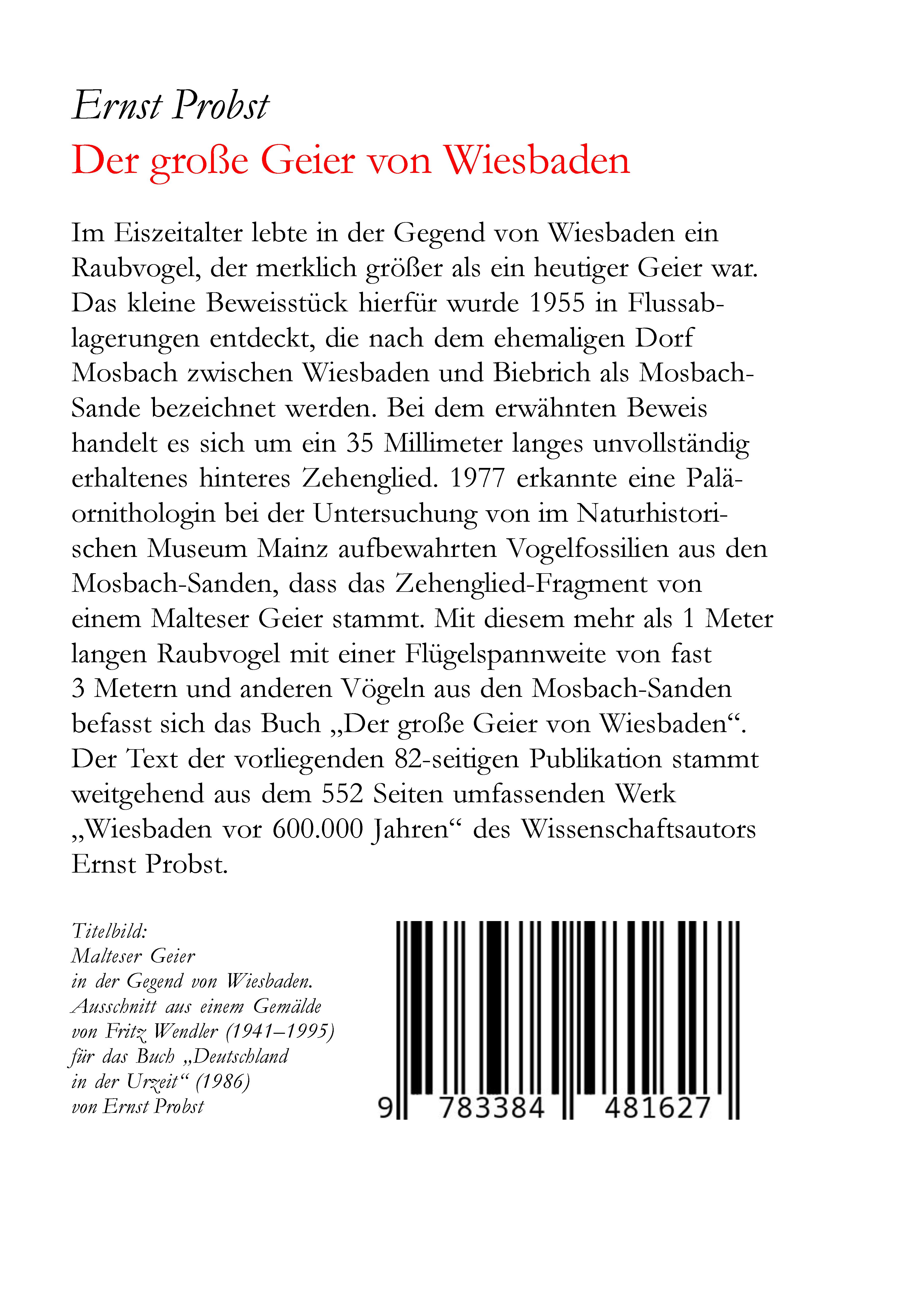 | Schlagworte | Eiszeitalter • Geier • Gyps-Geier • Mainz • Malteser Geier • Mosbach • Mosbach-Sande • Naturhistorisches Museum Mainz • Vogelfossilien • Wiesbaden |